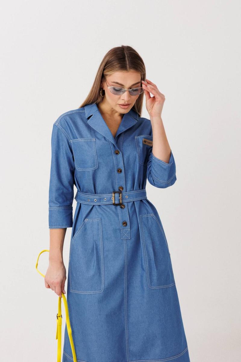 Элегантное платье прямого силуэта в рубашечном покрое выполнено из мягкого плательного денима на основе хлопка. Материал комфортный, дышащий и пластичный — идеально подходит для повседневной носки.