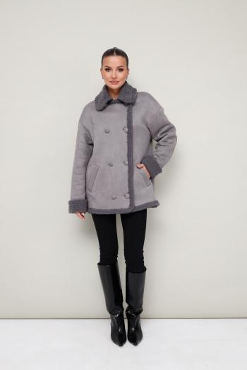 Платье прямого силуэта из трикотажной ткани. Перед с нагрудными вытачками из бокового шва. Спинка со средним швом, вверху шва обработан разрез с застежкой на петлю и пуговицу. Рукав одношовный втачной, по низу застрочены защипы. Длина спинки по среднему шву — 100см, длина рукава-45см.