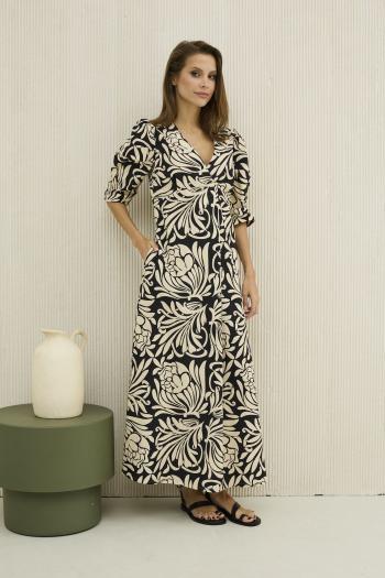 Платье, с центральной застежкой на петли и пуговицы, отрезной стойкой, круглым вырезом горловины. Платье отрезное по линии талии. Шов по талии присборен на резинку. Лиф переда разделен линиями вертикального сечения на три детали. В швы стачивания деталей переда втачивается кружево в тон ткани. Нижняя часть платья гофрирована. Рукав втачной, длинный, со сборкой по окату и отрезной манжетой. Шов притачивания к манжете присборен. Платье со съемным поясом. нижняя часть платья на подкладке