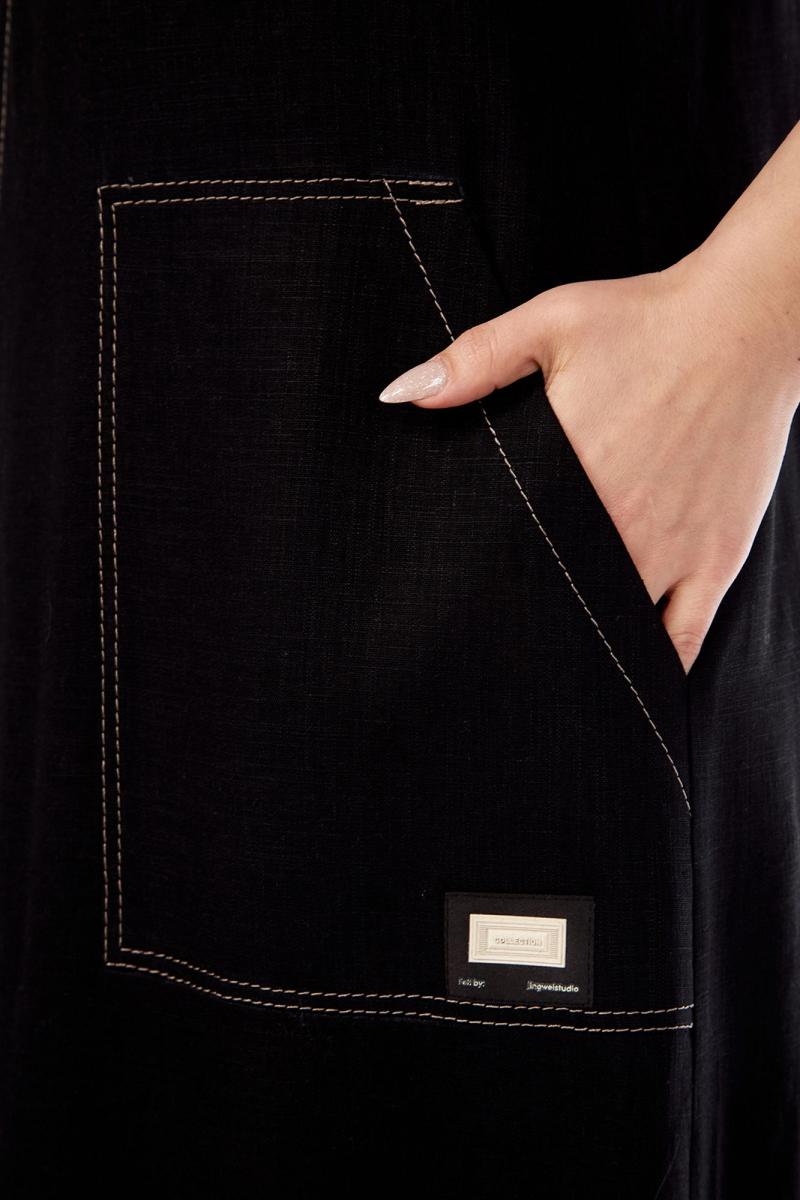 Сарафан женский А-силуэта из натуральной ткани. Горловина V-образной формы. По переду средний шов, нагрудные вытачки и обработаны накладные карманы. По низу разрез. Спинка со средним швом. Декором служат отделочные строчки, декоративная нашивка на кармане. Обращаем Ваше внимание, что цвет на экране может отличаться от реального. Длина сарафана по спинке — 128 см. р.52 — ПОГ 54,5 см ПОБ 62 см, р.54 — ПОГ 56,5 см ПОБ 64 см, р.56 — ПОГ 58,5 см ПОБ 66 см.