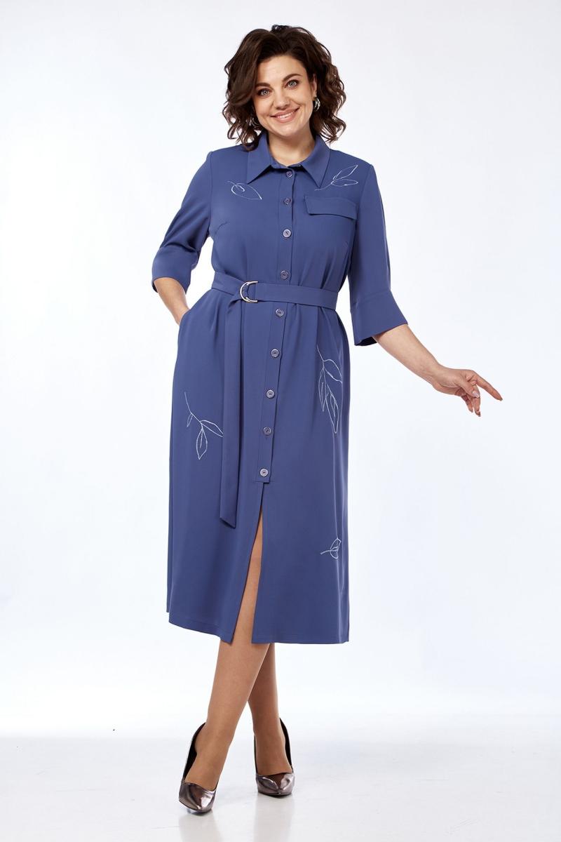 Платье женское, А-силуэта выполнено из плательной ткани. Воротник рубашечного типа, застежка центральная, фигурная планка на петли и пуговицы. Перед с нагрудными вытачками и ассиметричным клапаном в области груди. Спинка со средним швом. Рукава втачные со складками и притачной манжетой. Пояс выполнен из основной ткани с пряжкой. Платье декорировано дизайнерской вышивкой.