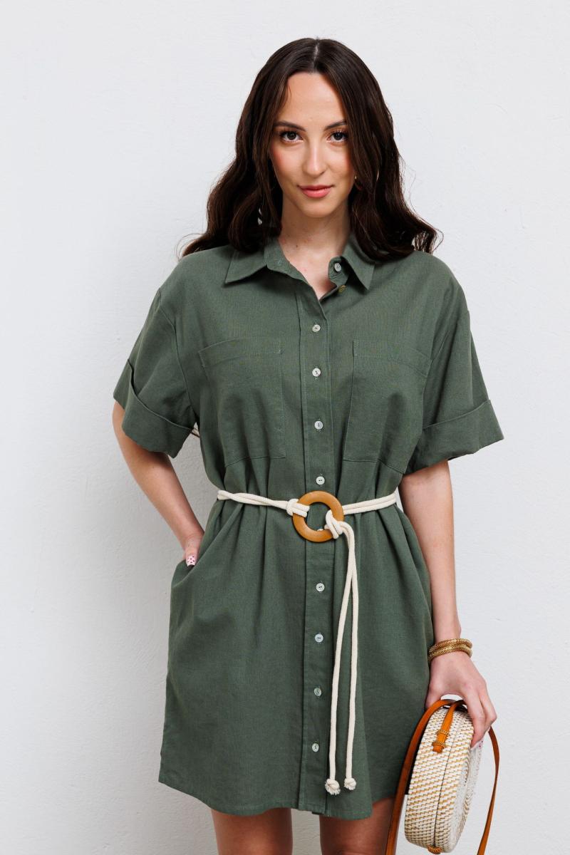 Платье прямого кроя в стиле “сафари”. По переду выполнены накладные карманы на груди, застежка - сквозная планка на пуговицы из натуральной ракушки. В боковом расположены удобные карманы. Линия плеча спущенная, рукав короткий с отворотом. По низу расположены маленькие сексуальные разрезы. По спинке кокетка от которой расположена бантовая складка. Благодаря свободному покрою, оно подходит для каждой женщины. Независимо от возраста, комплекции и роста, универсальный стиль этого платья способен преобразить фигуру любой женщины. В комплекте идет пояс, который поможет сделать акцент на вашей талии. Материал из которого выполнено платье хорошо поглощает влагу, не вызывает аллергии, обладает высокой степенью воздухопроницаемости. Льняное платье имеет большой срок службы, сохраняет первоначальный внешний вид даже после множества стирок. Оно не растягивается и не садится после стирки. Ткань не просвечивается, и не катается после носки.