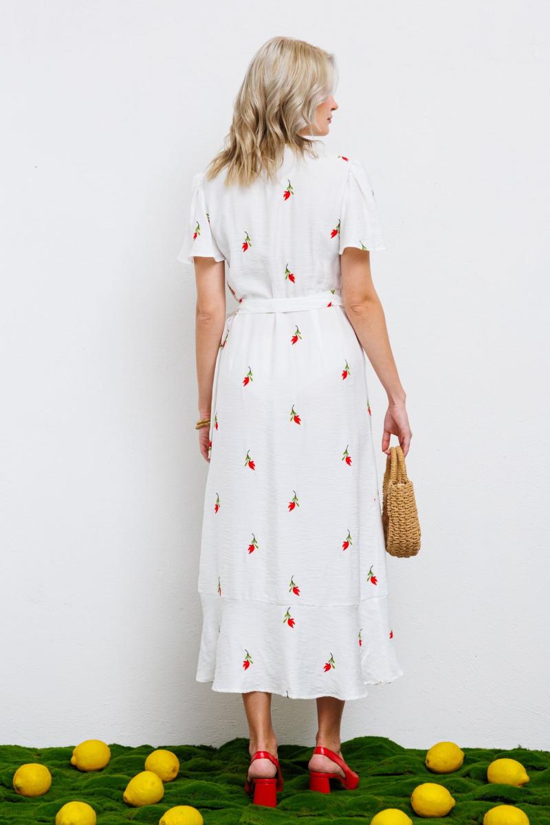 Платье на запах с воланом по низу. Платье отрезное по линии талии. прилегание по фигуре вы можете сами регулировать с помощью притачного пояса. В нем вы будете женственной и романтичной.