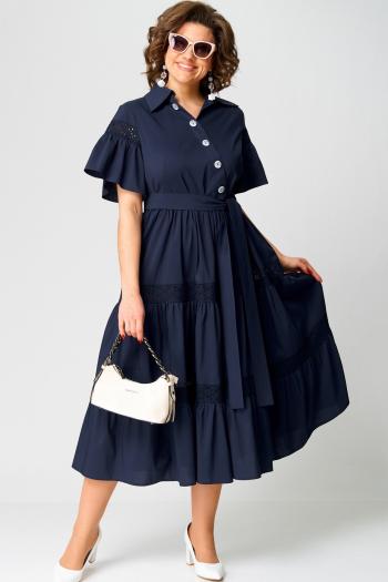 Элегантное платье полуприлегающего силуэта. Спереди и сзади украшением изделия служат вертикальные планки по всей длине, шириной 2-4 см. Полочка изделия имеет притачной фигурный бочок для силуэтного прилегания и отрезную заниженную нижнюю часть платья. Линия притачивания детали ниже уровня линии талии на 5-7 см. На спинке изделия расположены вертикальные вставки из отделочной ткани и вертикальные талиевые вытачки для силуэтного прилегания. В среднем шве расположена потайная молния и открытыйразрез. Рукав платья втачной, одношовный, с притачной манжетой, высотой 3-4 см. Длина рукава с манжетой 44 см. Горловина спереди имеет V-образный вырез, на спинке округлая форма, длина изделия платья по спинке 99-103 см (в зависимости от размерного ряда).