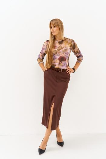 Достойное платье А-силуэта с притачным воланом, текстильным поясом и внутренним чехлом-комбинацией.