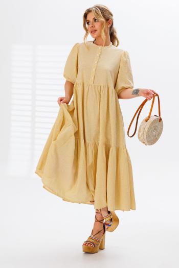 Стильное платье в спортивном стиле для самых модных девушек! Силуэт – трапеция. Воротник – стойка, отложные лацканы заострённой формы, застёжка центральная бортовая на три петли-пуговицы. Отрезное по талии. Верхняя часть спинки с притачной кокеткой. По спинке – талевые вытачки. По среднему шву переда – разрез. Фигурные боковые карманы. Длина платья по спинке от горловины до низа 103 см. Рукав – втачной, одношовный, с притачной манжетой, высотой 5 см, на функциональную застёжку на петли – пуговицы. Длина рукава с манжетой – 63 см. Завязывающийся пояс подчёркивает талию. Цвет платья может отличаться на полутон от заявленного на фото.