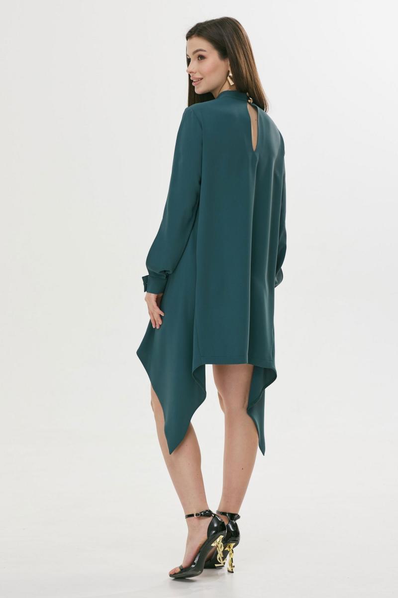 Платье А-образного силуэта из струящейся ткани. Горловина-стойка, на спинке застежка на петли и пуговицы. По центру горловины складки. По бокам вставлены клинья. Рукав втачной длинный, по низу манжета с застежкой на петли и пуговицы. Обращаем ваше внимание, что фурнитура может незначительно отличаться от фото. Длина платья: 44-48р – 83 см 50-54-87 см Длина рукава: 61см