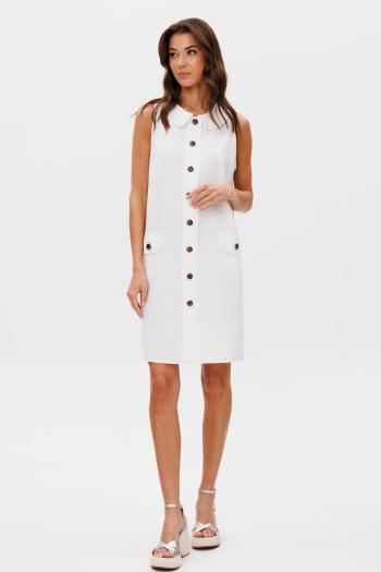 Платье «Фламинго» приталенного силуэта. Легкое платье малого объема, отрезное по талии, с нагрудными и талиевыми вытачками. Спинка украшена фигурным вырезом и открытой деталью на уровне талии. Горловина округлая, с застежкой на петлю и пуговицу сзади. Рукава длинные, втачные, с эффектным расширением к низу. В среднем шве спинки предусмотрена потайная молния. Длина платья — выше колена. Длина рукава - 58-62. Длина юбки - 50 см