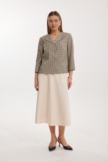 Летнее платье полуприлегающего силуэта, выполнено из смесового льна (в составе лен и вискоза, ткань менее мнется). Лиф платья отрезной по линии талии, с втачным поясом на резинке, горловина V-образной формы, обработана втачным воротником. Рукав цельнокроеный, спущенный, по низу на манжете. Также на полочке обработаны накладные карманы с клапаном на пуговицу. Юбка платья расклешенная к низу, длиной midi, в боковых шах карманы. Спинка идентична полочке, отрезная по линии талии, на лифе обработаны вертикальные подрезы, также спинка декорирована терм-печатью. Платье не только выглядит стильно, но за счет натуральной ткани отлично подойдет для жаркого лета!