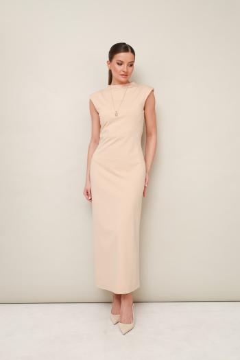Платье женское полуприлегающего силуэта выполнено из льняной ткани. По переду фигурный подрез, талевые вытачки, функциональные карманы с клапанами, двубортная застёжка на четыре прорезные петли и пуговицы. По спинке талевые вытачки и центральный шов, заканчивающийся шлицей с разрезом. Рукава двух шовные втачные. Горловина v-образная. Платье на тонкой хлопковой подкладке.