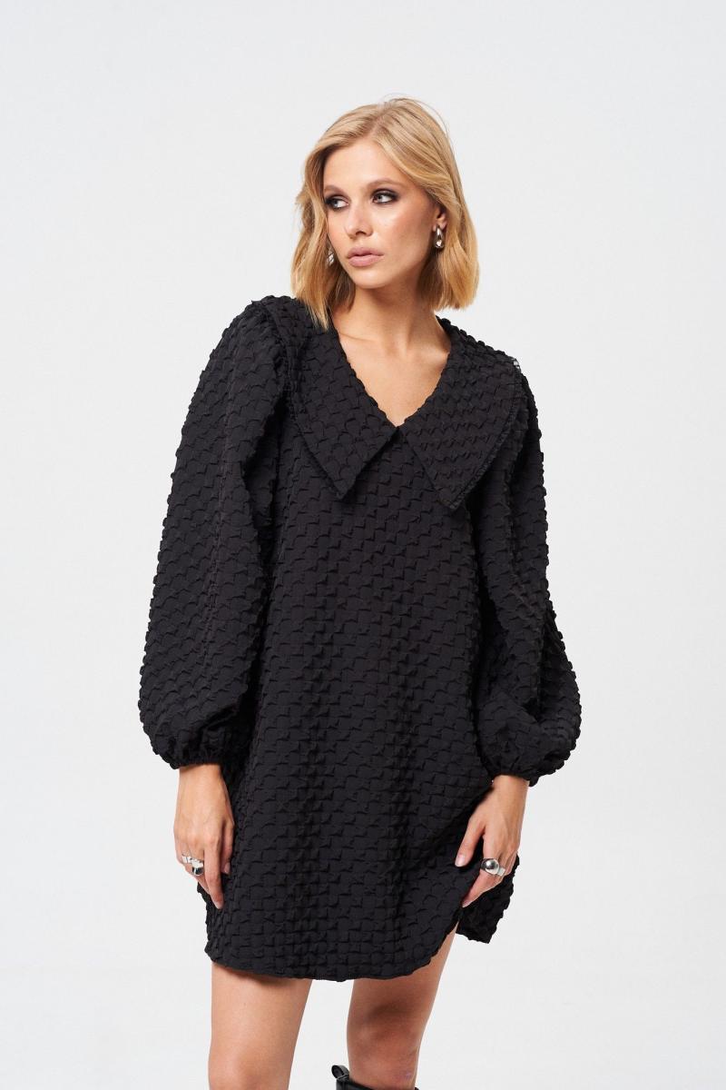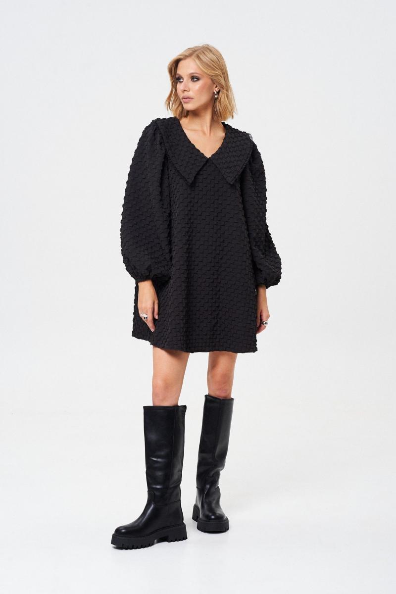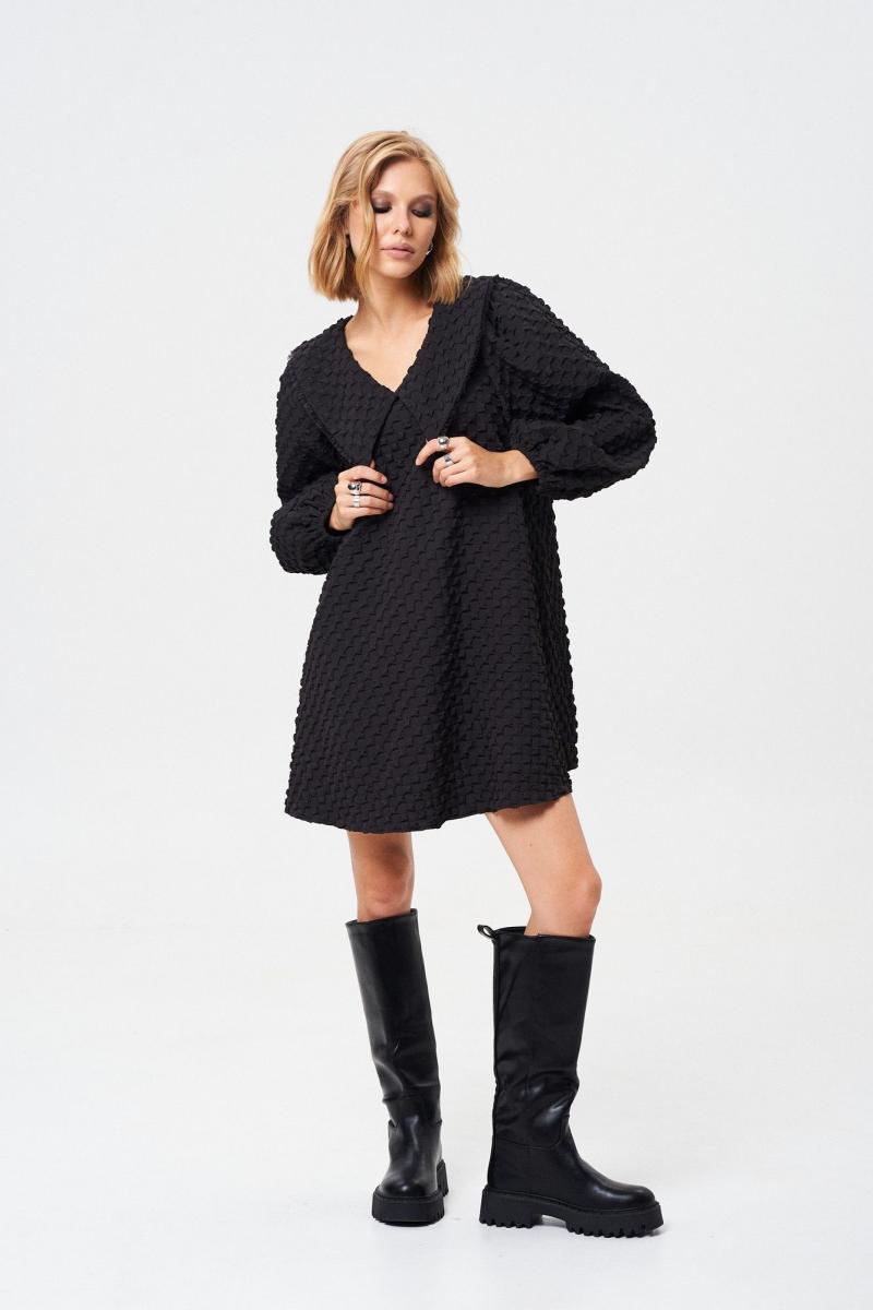 Платье свободного силуэта. Воротник с отделкой декоративной тесьмой. Платье на подкладке. Длина платья 85 см, длина рукава от воротника 73 см. ОГ 42-44 р-р - 106 см, 46-48 р-р - 110 см