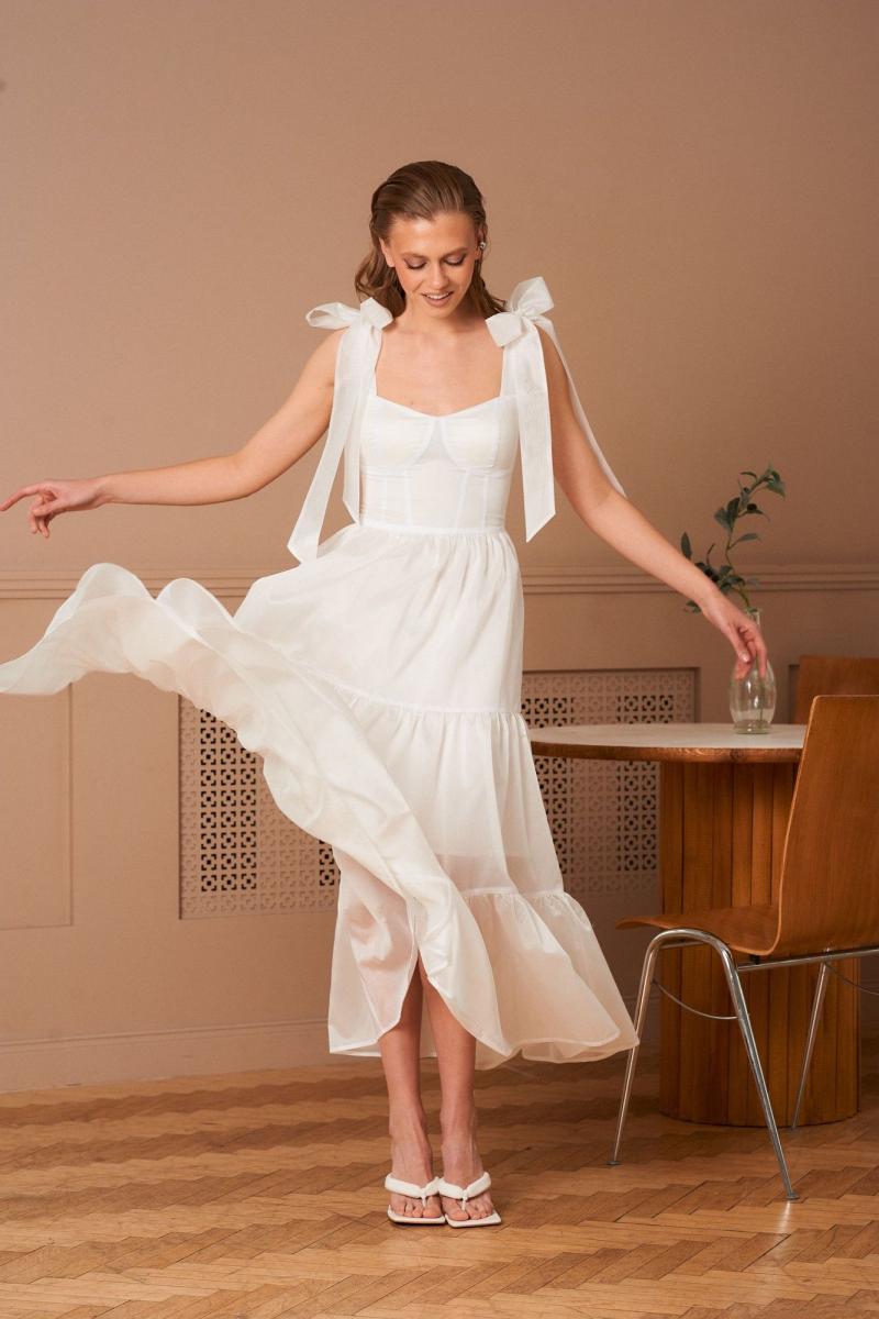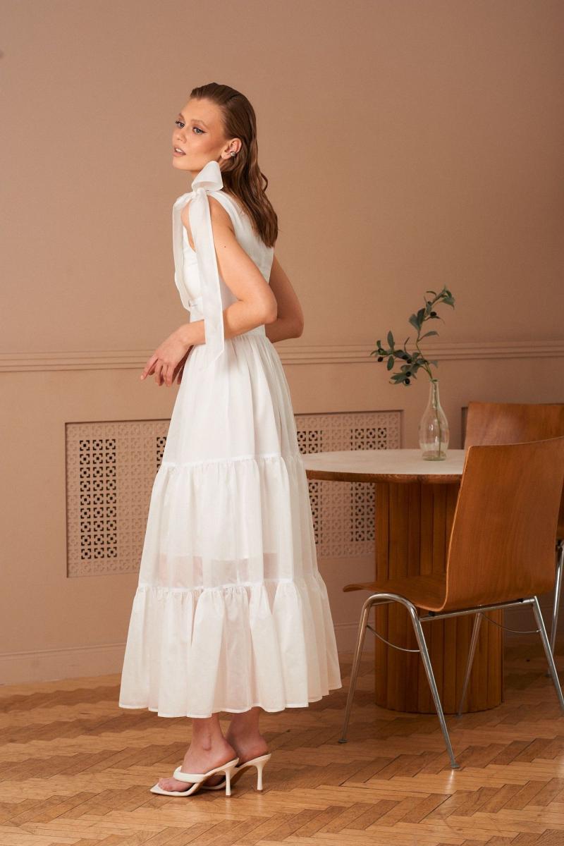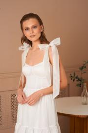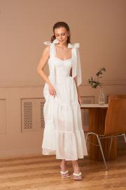 Платье в длине миди из воздушной вискозной ткани. Банты на шлейках съемные. Лиф с чашками Push-up. Молния на спинке. Длина платья 132 см.