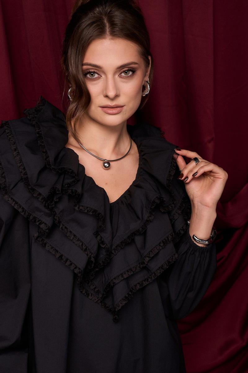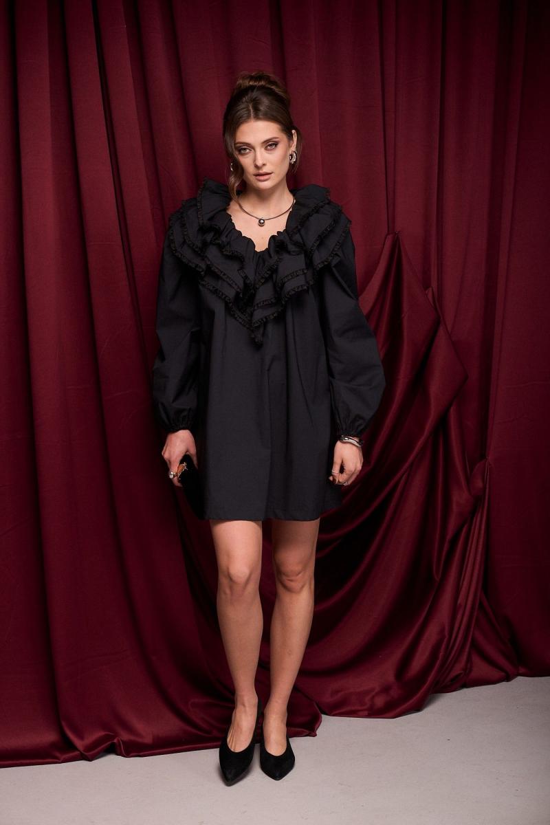 Платье из хлопка премиального качества. Изделие с пышным акцентным воротником. В боковых швах карманы. Платье на подкладке. Воланы декорированы тесьмой. Длина платья 90 см 42-44 р-р ОГ 127-129 см, ОТ 136-138 см; 46-48 р-р ОГ 131-133 см, ОТ 140-142 см