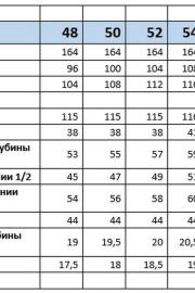 Таблица размеров