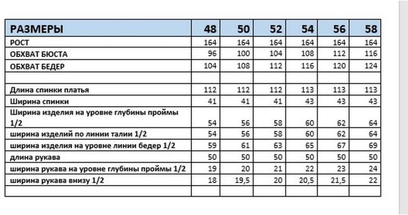 Таблица размеров