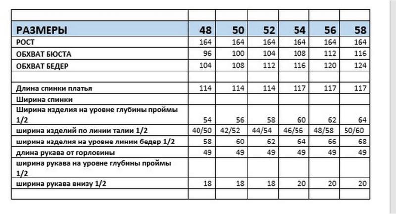 Таблица размеров
