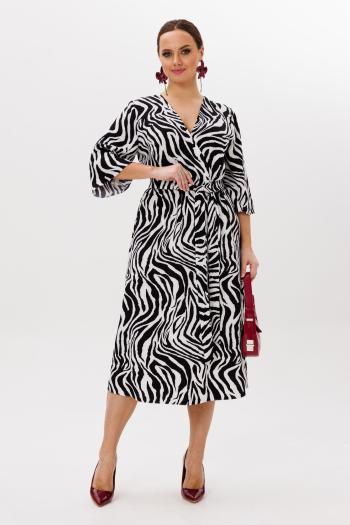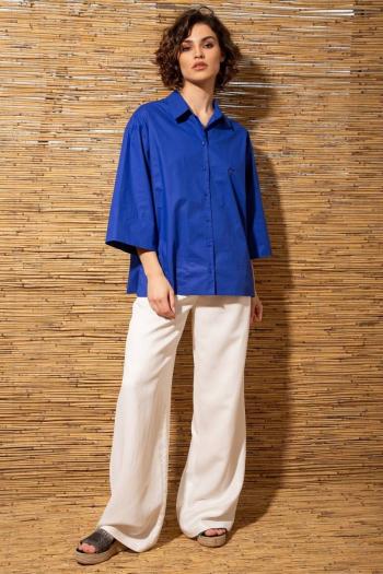 Комфортное хлопковое платье длиной миди свободного прямого кроя со стояче-отложным рубашечным воротником. Рукава втачные длиной три четверти. По боковым швам - разрезы. Изделие без подкладки, с карманами.Застёжка на кнопки. На нагрудном кармане имеется нашивка.