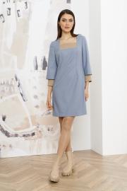 Стильное платье лаконичного кроя с модной горловиной квадратной формы и трикотажными довязами.