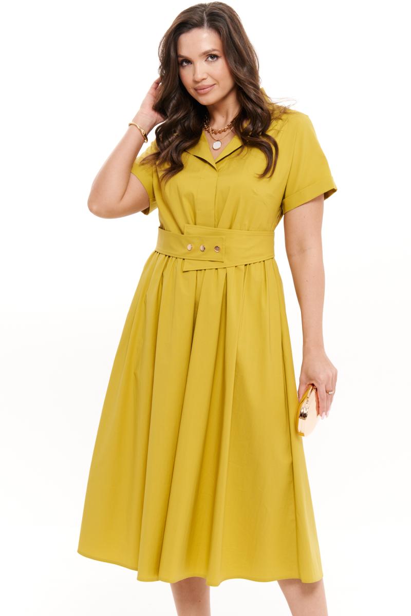 Платье женское из смесовой ткани для повседневной носки. Платье, расширенное к низу, а также отрезное по линии талии и имеет сборку. Перед имеет две нагрудные вытачки. В боковом шве имеются потайные прорезные карманы. Горловина обработана втачной планкой и стойкой. Рукава цельнокроеные, низ рукава обработан отлетной манжетой, длинна рукава чуть выше локтя. Длинна платья макси. Для придания формы в области талии имеется пояс из основной ткани с застежкой на кнопки. В платье имеются по планке декоративные закрепки. Платье элегантного василькового цвета, в котором вы будете выглядеть очень привлекательно. За счет большого содержания хлопка в платье, ваша кожа будет чувствовать себя комфортно. Красивое и элегантное платье в котором вы будете выглядеть неотразимо.