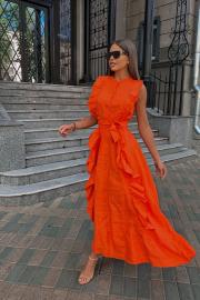 Низ платья, так же, декорирован воланом, придающим романтичности и особого шика.