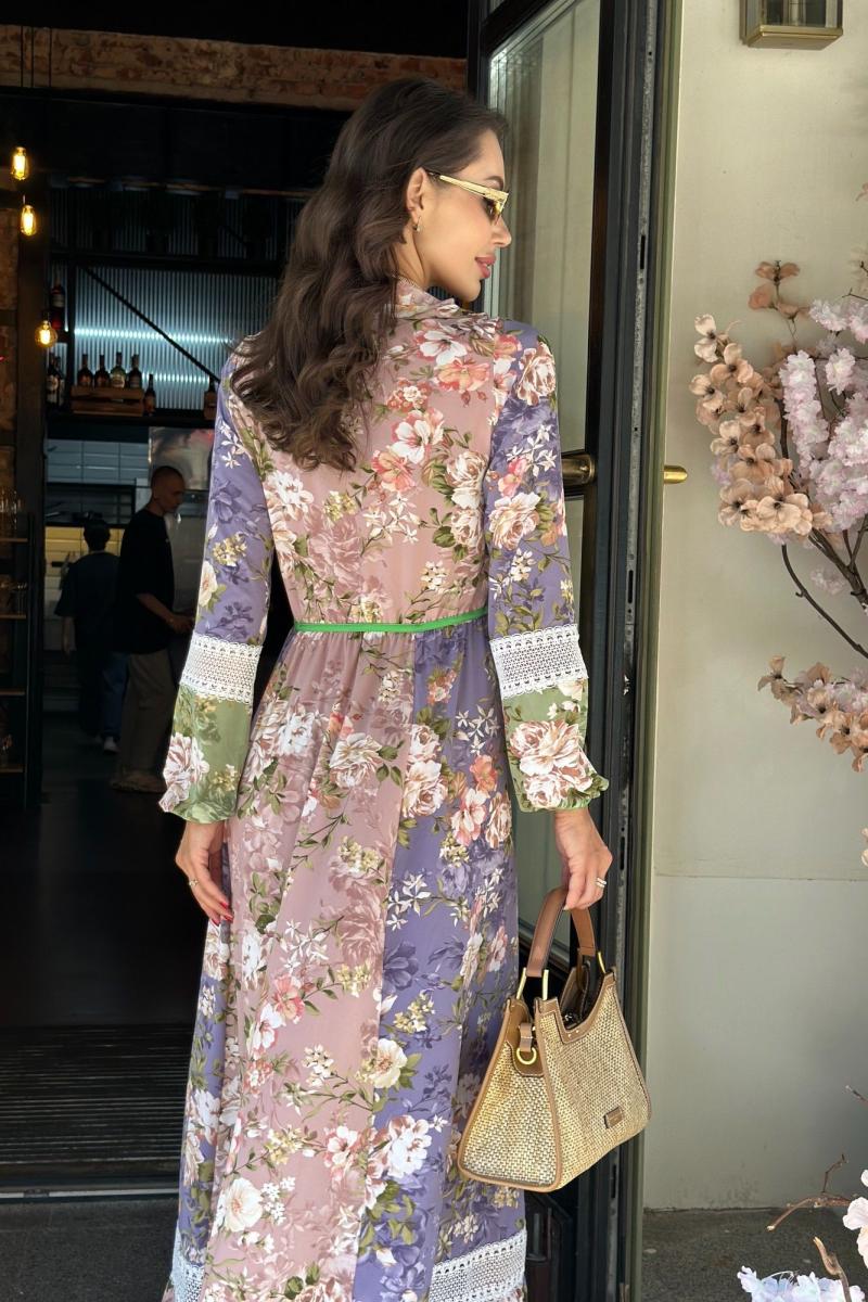 Окунитесь в богемную элегантность с нашим потрясающим платьем! Покорите всех своей оригинальностью и уникальностью. Благодаря легкой ткани это платье создано для того, чтобы вы чувствовали себя свободно и изысканно. Модель платья вдохновлена природой и свободой. В центре внимания - легкое и воздушное платье макси с кружевными вставками, дополненное ярким пояском на талии.
