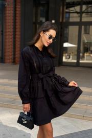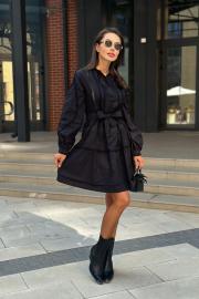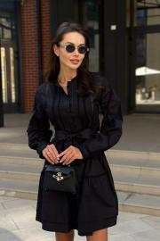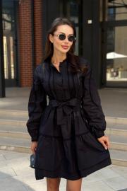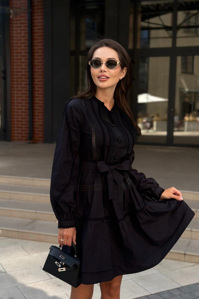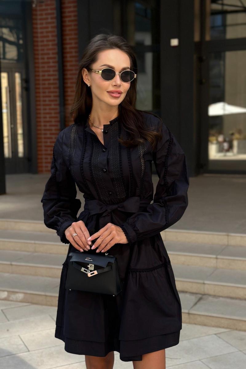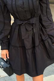 Платье из 100% хлопка со сложной отделкой и кружева и тесьмы с помпонами. Можно носить без пояса. По талии платье не приталенное.