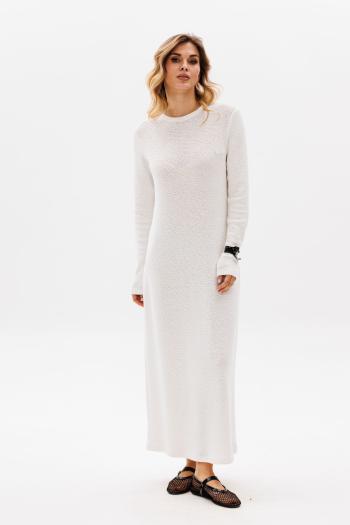 Платье состоит из верхнего платья из жатого тонкого шифона, и нижнего платья-комбинации. Платье отрезное по груди, свободного силуэта. Длина 119 см.