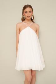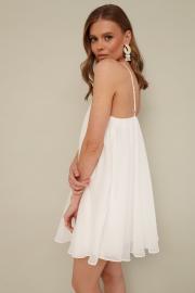 Летнее платье А-образного силуэта, в длине мини. Лиф с фигурным вырезом, на бретельках с регуляторами. Платье из натуральной вискозы, нижнее платье-футляр выполнено из струящейся ткани с благородным блеском. Застежка в среднем шве спинки на потайную молнию.