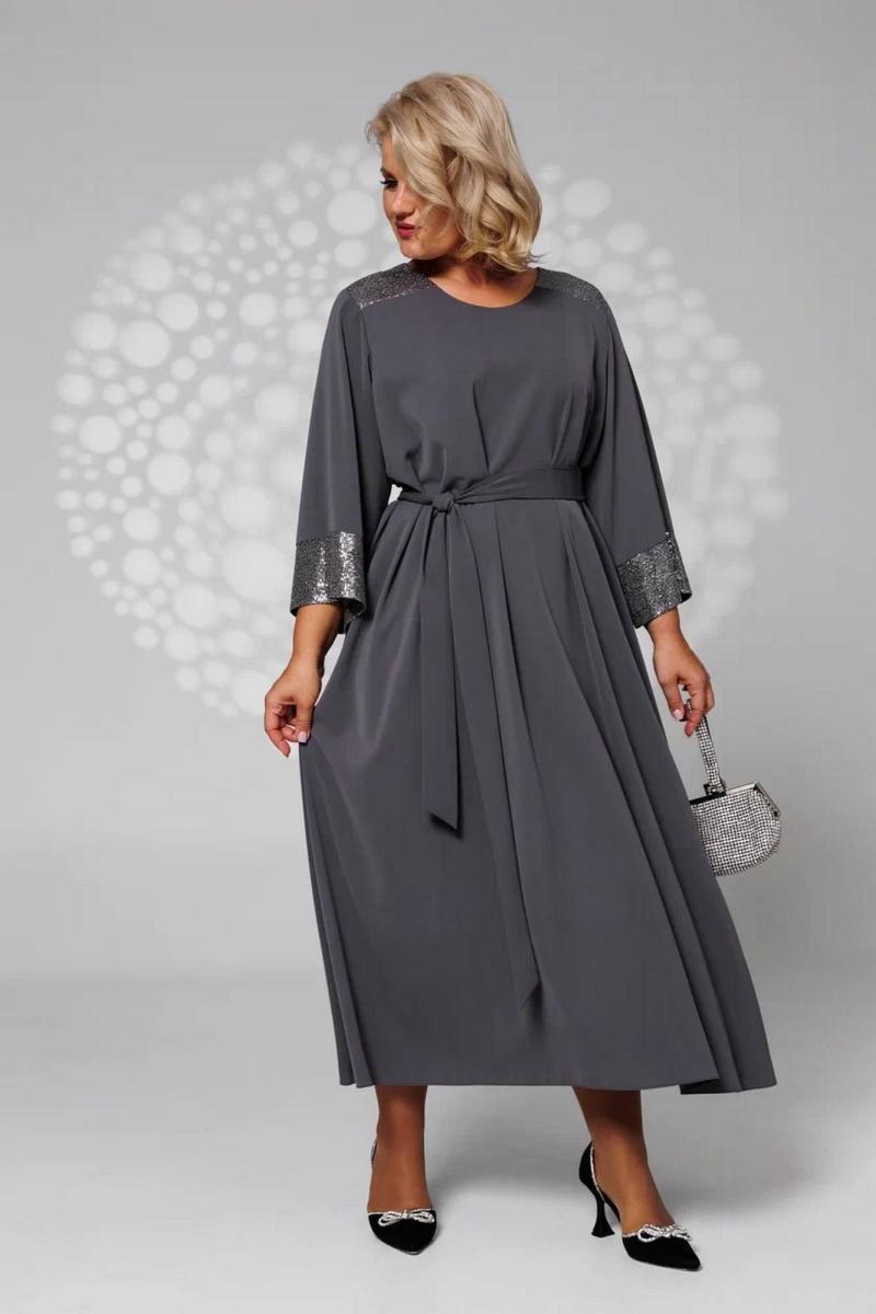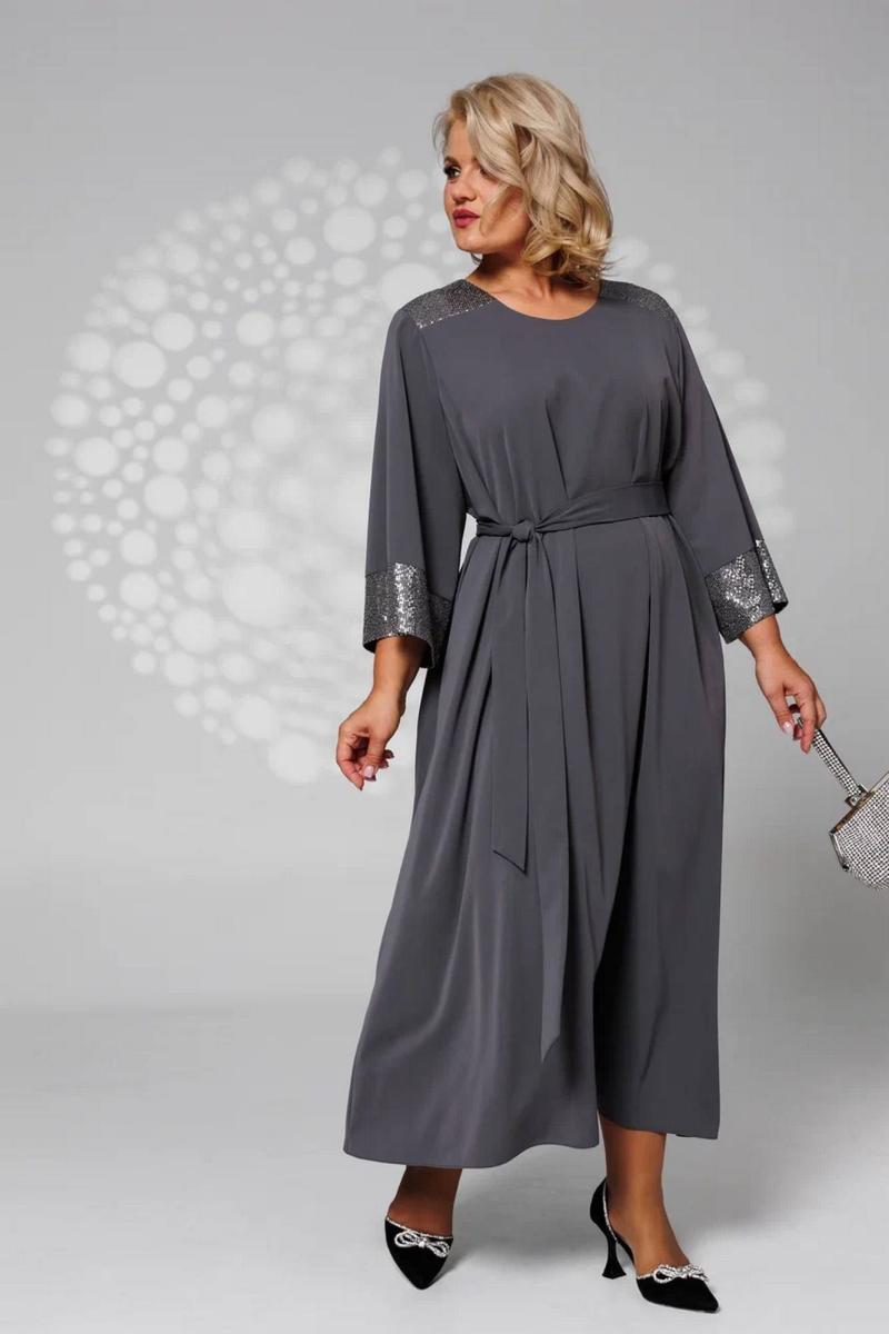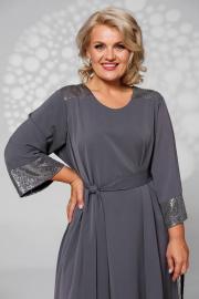 Платье свободного кроя, летящее нарядное с поясом в комплекте. Можно носить без пояса, сядет на любой тип фигуры и скроет недостатки. В виде декора - пайетки, которые в меру придают образу праздник.