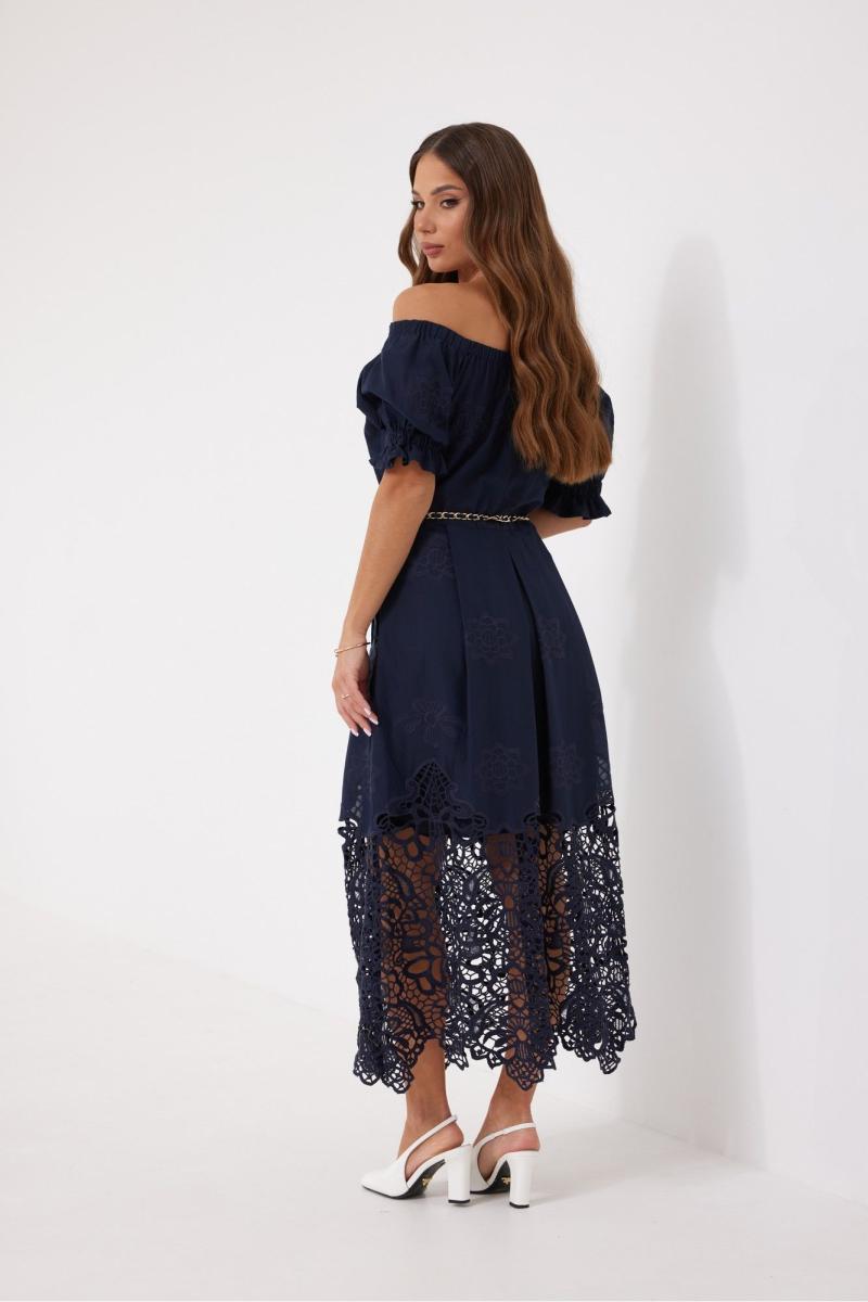 Платье из хлопковой ткани «ришелье». Длина макси. Платье отрезное по талии, юбка со складками. Верх с открытыми плечами и съемными бретелями. Застежка в боковом шве на потайную молнию. Рукав «фонарик». В боковых швах карманы. В комплекте декоративный пояс-завязка. Платье на подкладке. Длина рукава 30 см. Длина платья 121 см. Длина спинки до талии - 32 см. Измерения по готовому изделию 44 р-р: ОГ - 108 см., ОТ - 82 см., ОБ - 112 см. 46 р-р: ОГ - 112 см., ОТ - 86 см., ОБ - 116 см. 48 р-р: ОГ - 116 см., ОТ - 90 см., ОБ - 120 см. 50 р-р: ОГ - 120 см., ОТ - 94 см., ОБ - 124 см. 52 р-р: ОГ - 124 см., ОТ - 98 см., ОБ - 128 см.