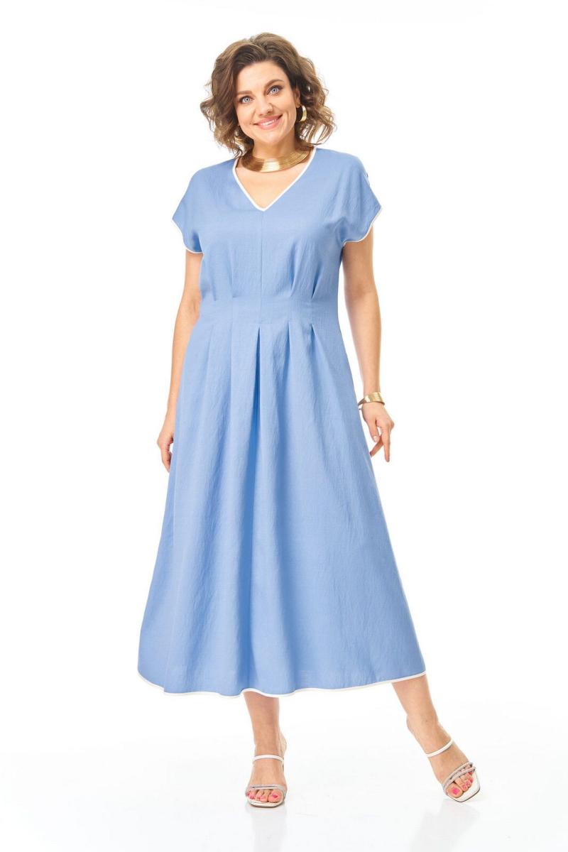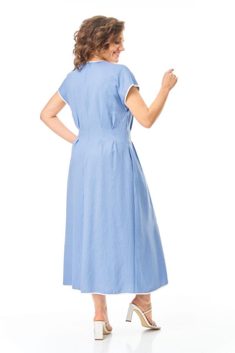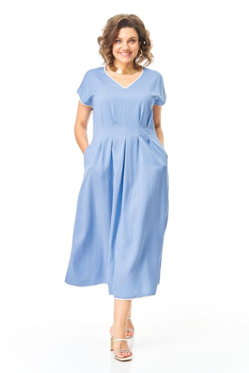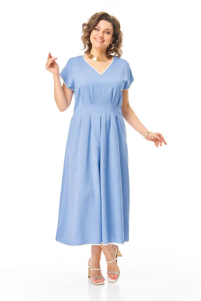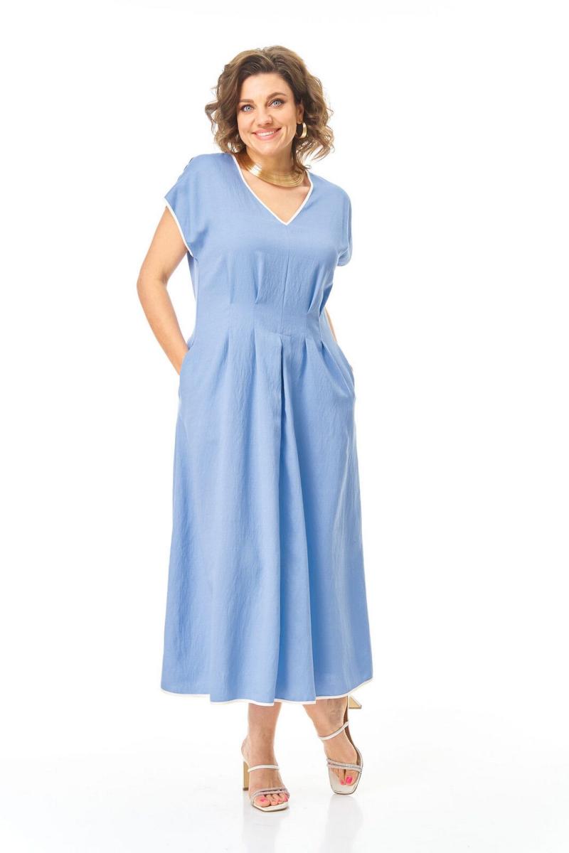 Платье женское полуприлегающего силуэта расширенное к низу со спущенной линией плеча.Рукав типа "летучая мышь".Горловина V-образной формы.В среднем шве спинки застежка на тесьму-молнию.По переду и спинке для придания прилегания застрочены складки.В боковых швах обработаны карманы.Горловина, низ рукава и платья окантованы тканью контрастного цвета.