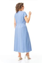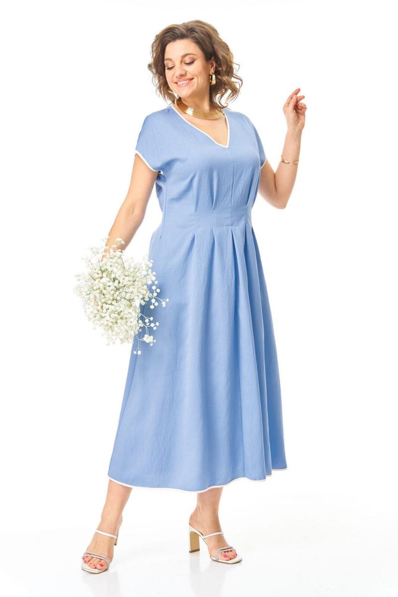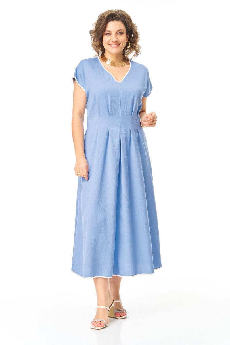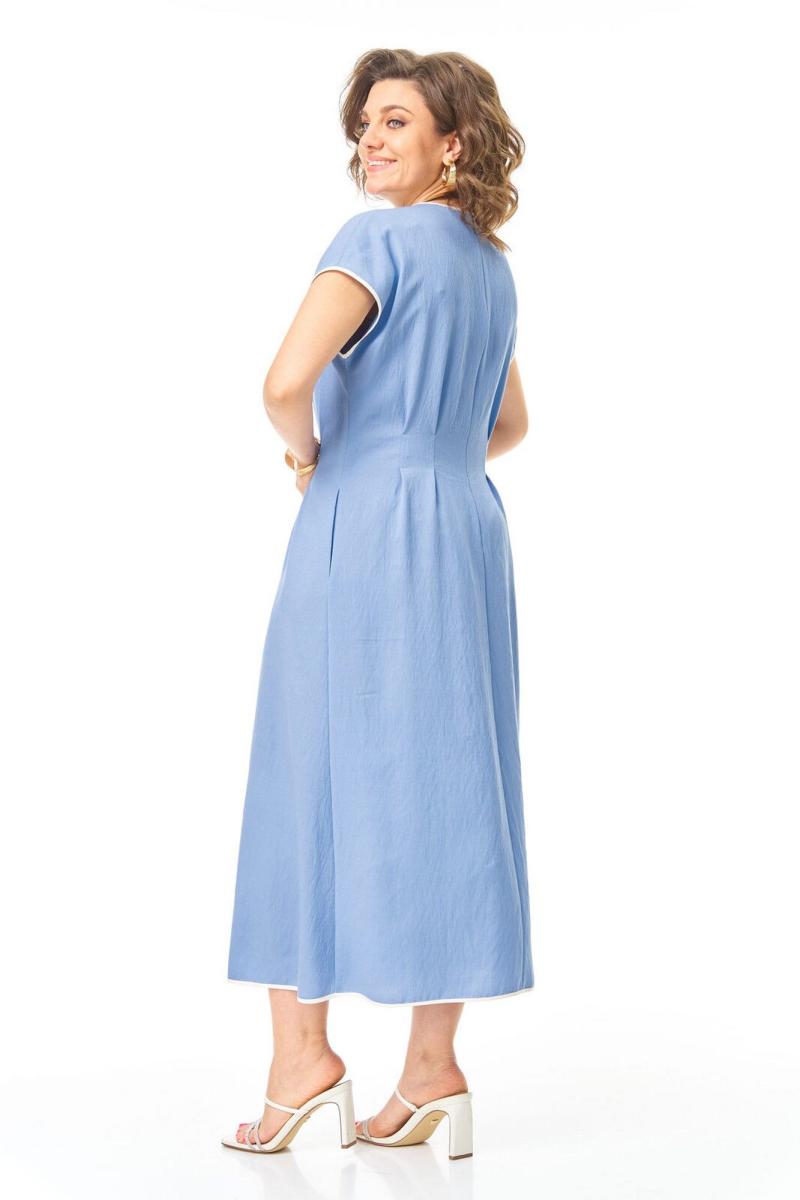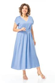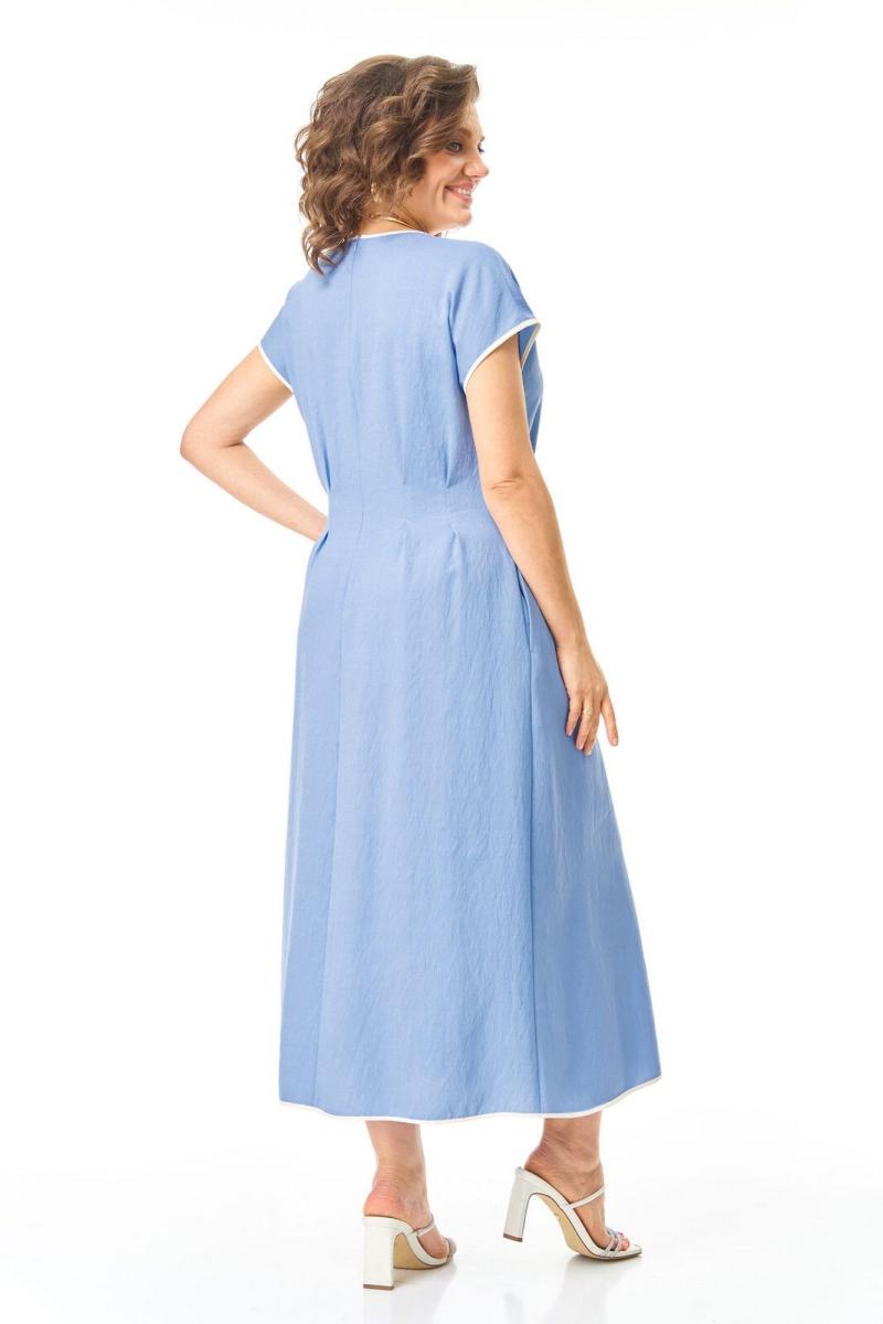 Платье женское полуприлегающего силуэта расширенное к низу со спущенной линией плеча.Рукав типа "летучая мышь".Горловина V-образной формы.В среднем шве спинки застежка на тесьму-молнию.По переду и спинке для придания прилегания застрочены складки.В боковых швах обработаны карманы.Горловина, низ рукава и платья окантованы тканью контрастного цвета.