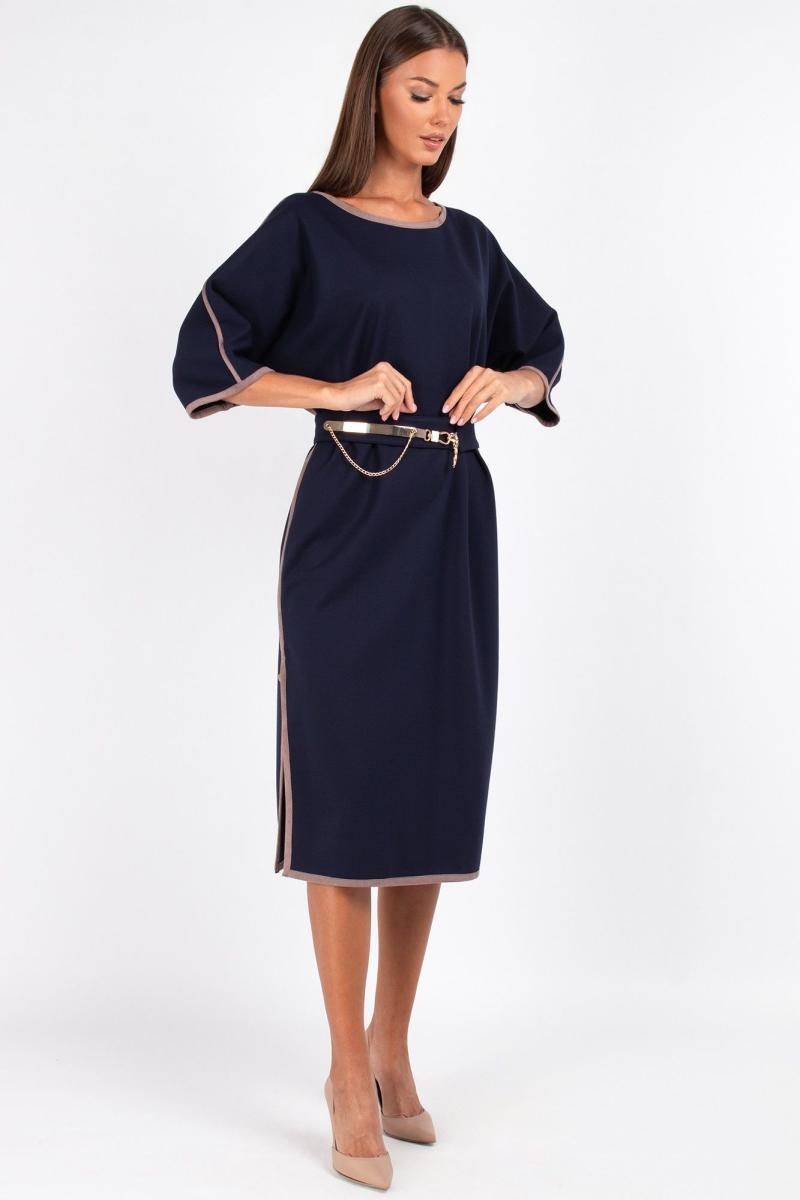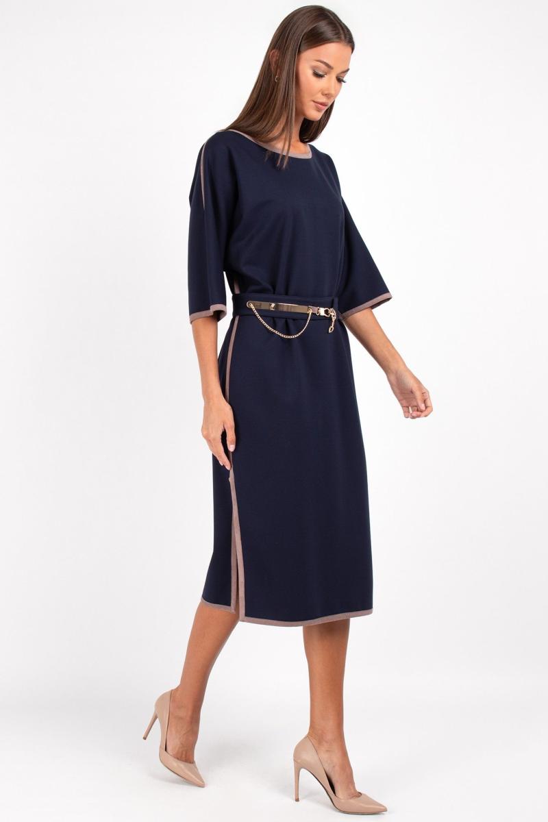 Съёмный пояс с металлическими элементами цвета золота подчёркивает талию и завершает композицию, превращая платье в универсальный вариант для офиса, прогулок или вечерних мероприятий.