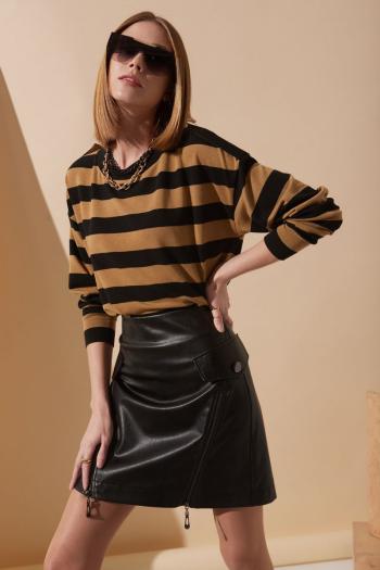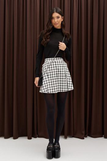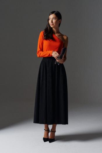 Юбка прямого кроя выполнена из черного ворсистого полотна с пайетками. Характеристики: прямой крой, подкладка, пояс на резинке. Длина юбки 43 см.