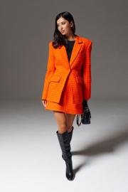 Миниатюрная юбка полуприлегающего силуэта выполнена из фактурного полотна. Характеристики: полуприлегающий силуэт, подкладка, застежка - потайная тесьма молния. Длина 45 см.