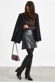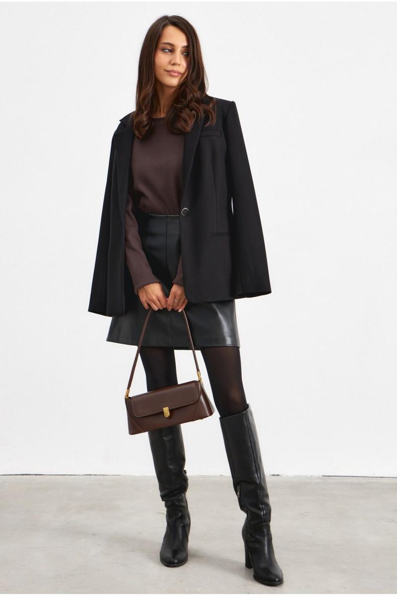 Юбка из экокожи в черном цвете. Юбка А-образного силуэта, с потайной молнией.