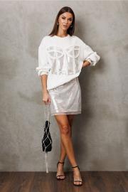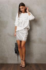 Юбка А-образного силуэта из пайеток, вверху на обтачке. С застежкой в боковом шве на металлическую тесьму-молнию. По задней половинке юбки вытачка. Юбка без на подкладке.