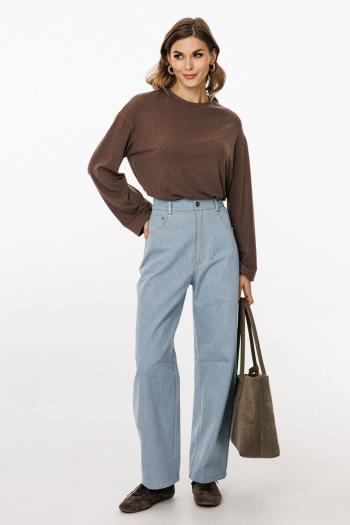 Юбка женская, слегка зауженная книзу, с разрезом в левом боковом шве, на подкладке. Переднее полотнище с средним швом, горизонтальным подрезом на уровне линии бедер, двумя прорезными карманами с листочкой. Заднее полотнище с талиевыми вытачками, средним швом и горизонтальным подрезом на уровне линии бедер. Застежка – гульфик на молнии. Пояс притачной, с застежкой на 1 петлю и 1 пуговицу.