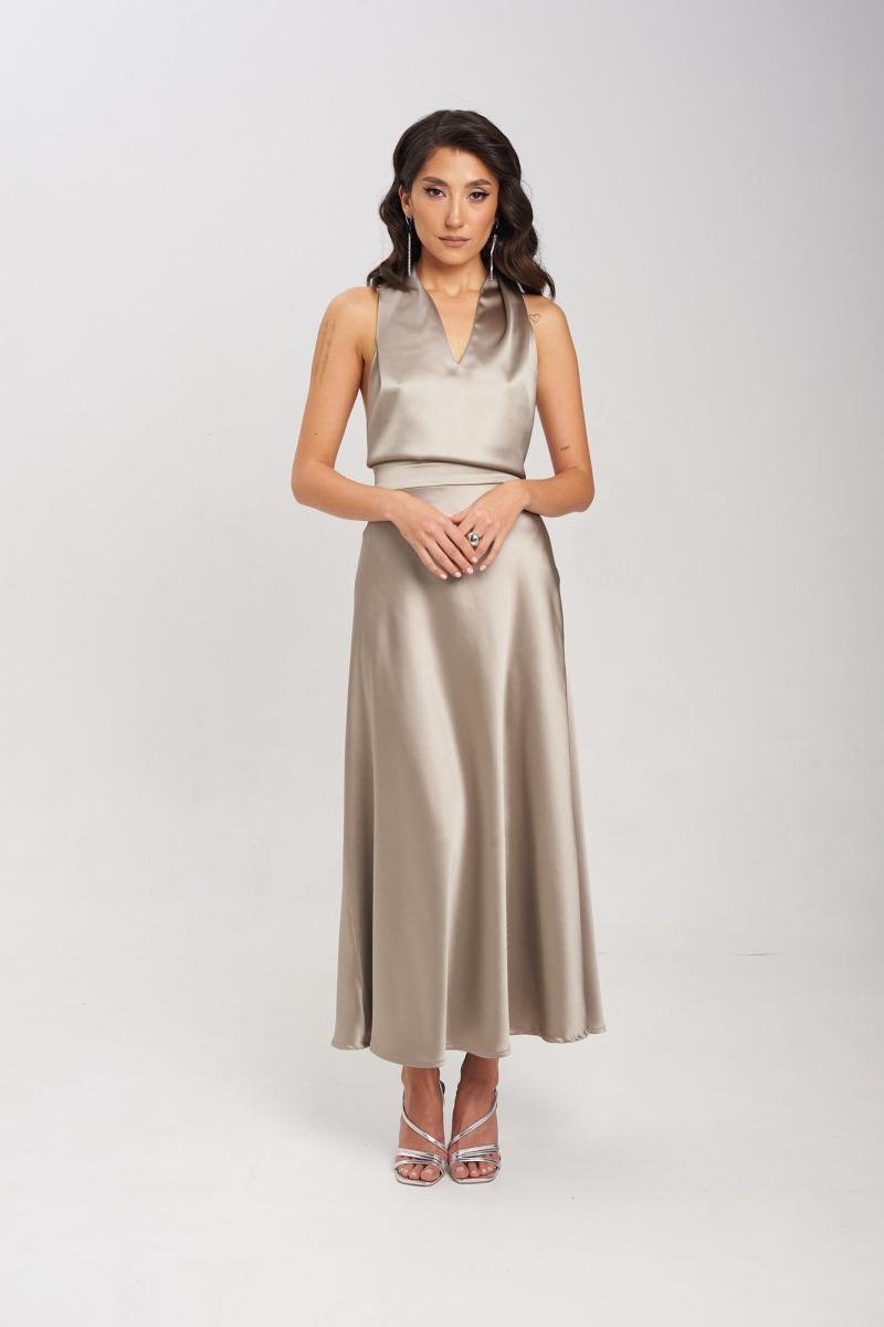 Юбка А-силуэта из струящейся ткани на притачном поясе, с застежкой молнией в боковом шве. Юбка подойдет как для повседневных выходов, так и для праздничного события. Длина юбки 95 см