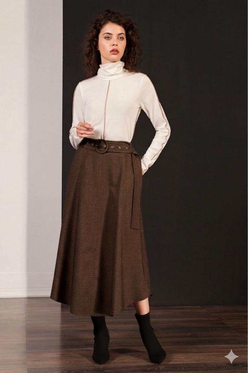 Юбка женская из костюмной ткани с высокой посадкой на талии, с притачным поясом.