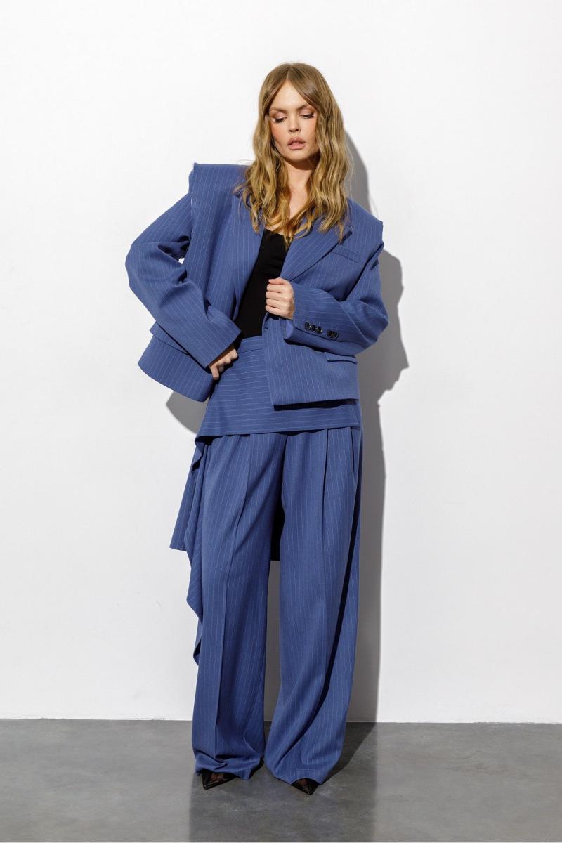 Юбка-баска килт в полоску. Детали: притачной пояс с застежкой на петлю и пуговицу.  Приобрести жакет с фото можно по арт. 6377, брюки по арт.6378