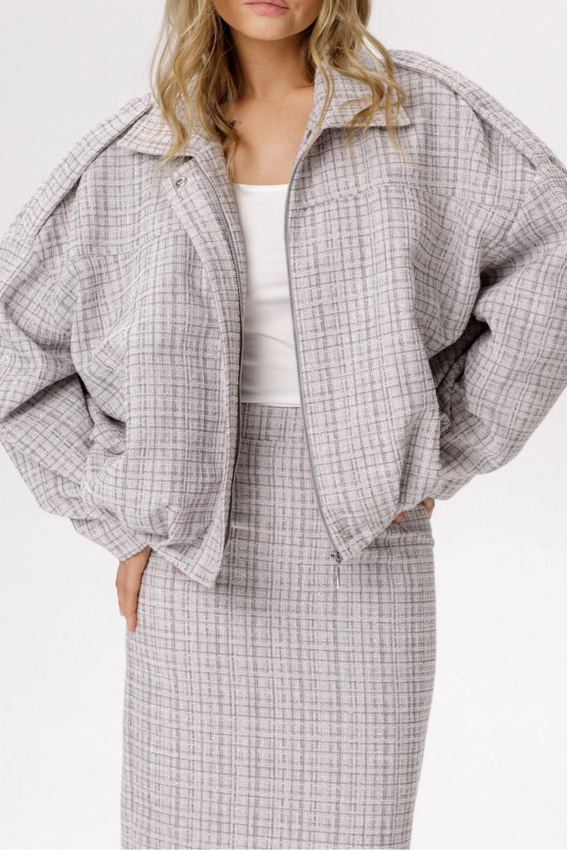 Прямая юбка миди из фактурной ткани (приобрести бомбер с фото можно по арт. 6667). Детали: прямой силуэт, длина до середины икры, притачной пояс, талиевые вытачки на переднем и заднем полотнище, потайная молния в среднем шве заднего полотнища, юбка с отлетной подкладкой. Длина по боковому шву с поясом около 79 см в размерах 40-46, около 81 см в размерах 48-52