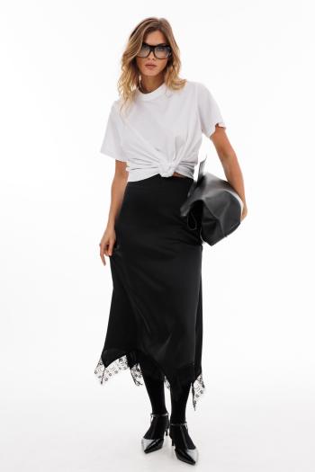 Юбка прямого силуэта. Спереди обработан средний шов со шлицей в низу. На передних полотнищах обработаны карманы с косым входом и застёжка на молнию. Верх юбки на притачном поясе со шлёвками и эластичной тесьмой. Изделие на подкладке. Длина по боковому шву с поясом ок. 91см. в 52 м.