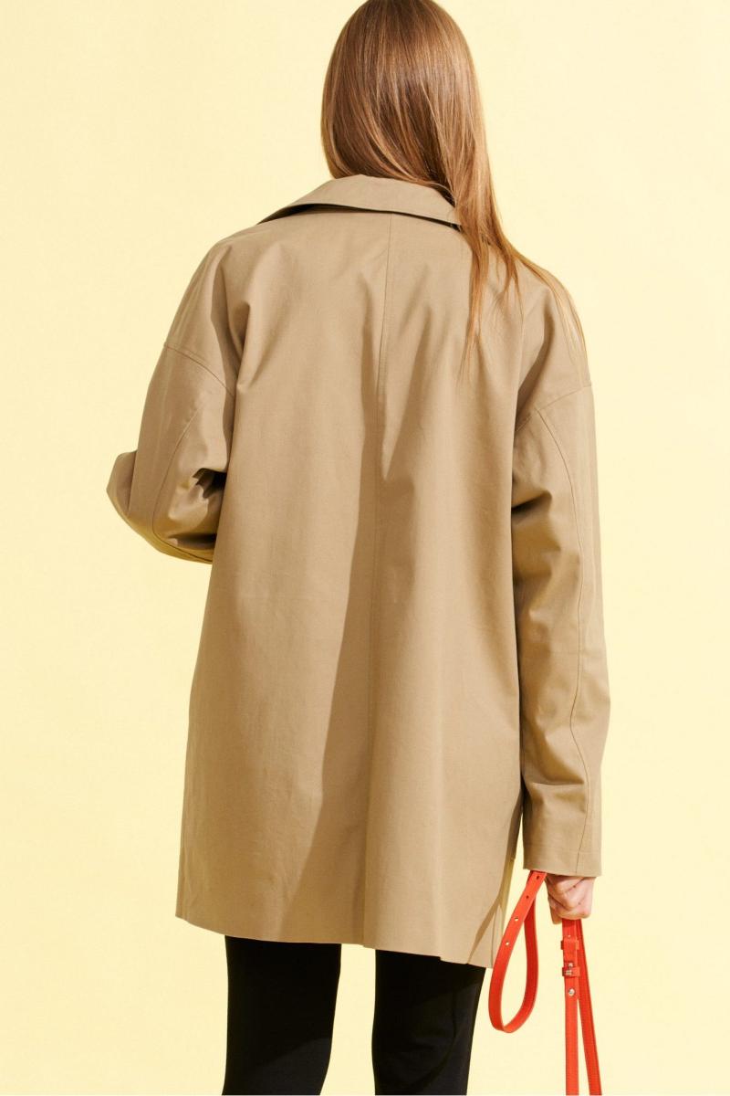 Парка женская из хлопковой костюмной ткани прямого силуэта, со спущенным плечом, длиной ниже линии бедер, с центральной бортовой застежкой на петли и пуговицы, на подкладке. Полочки с 2мя совмещенными накладными верхним с клапаном и нижним карманами. Спинка со средним швом. Рукав втачной двухшовный. Воротник отложной с отрезной стойкой.