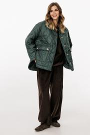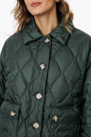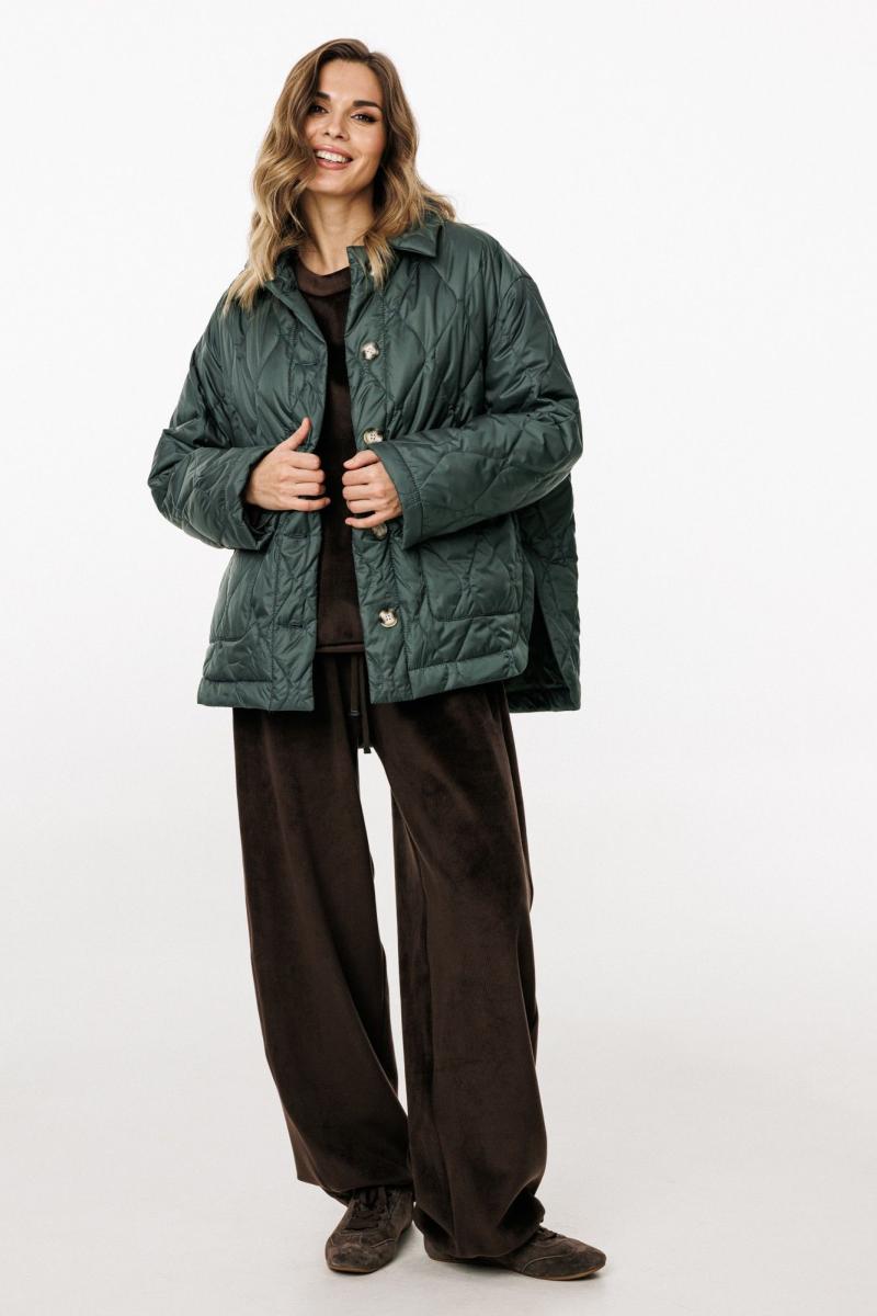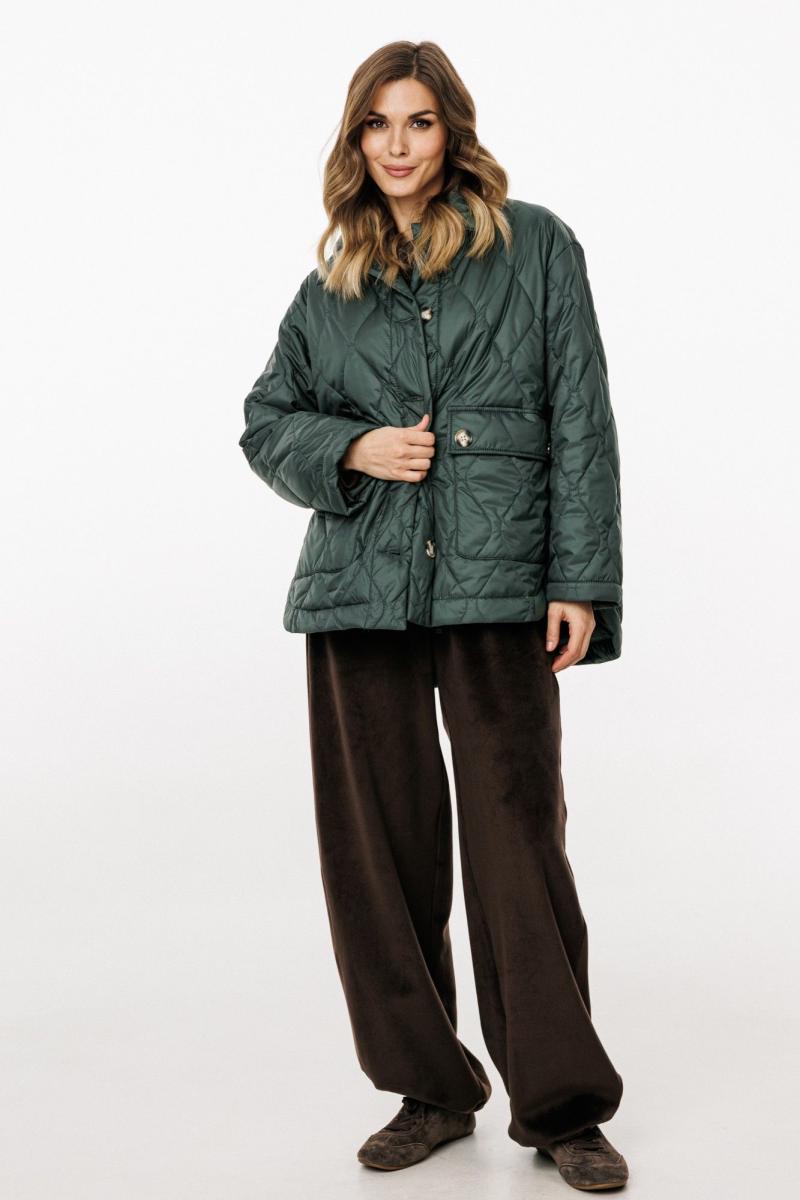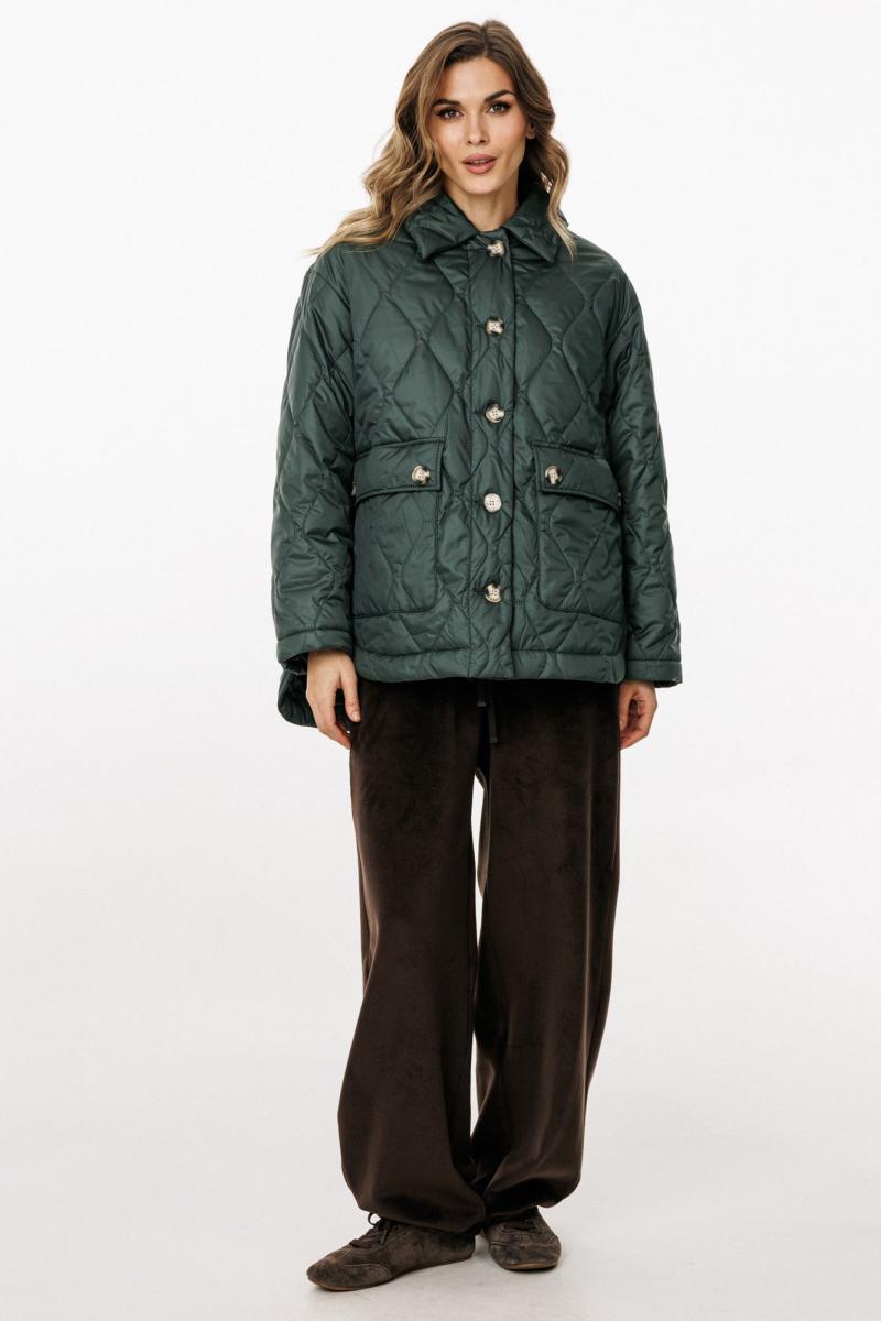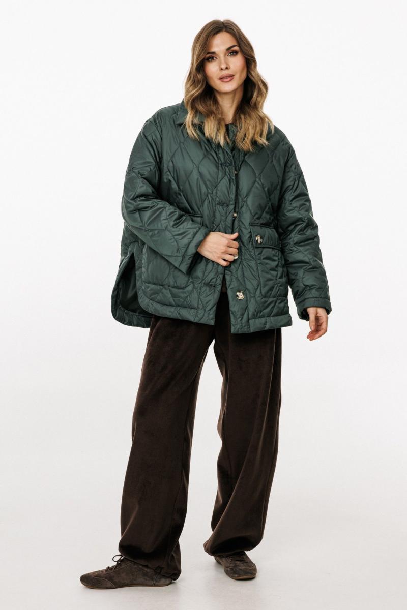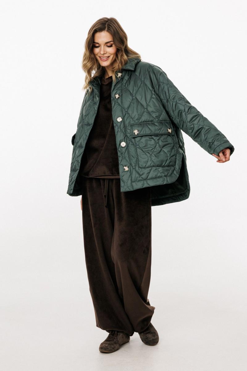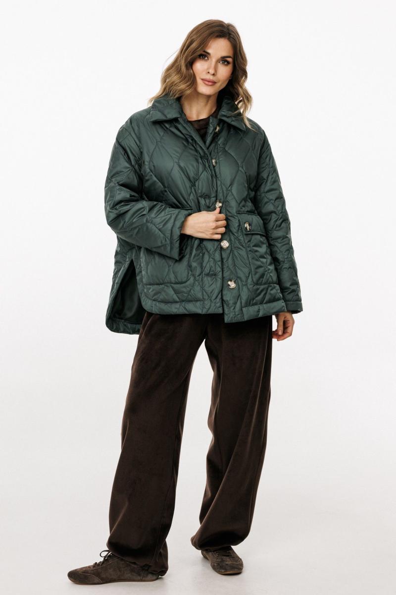 Куртка выполнена из плащевой ткани, простеганной с Isosoft. Куртка прямого силуэта, длиной до линии бедер. Застежка центральная бортовая на пришивные пуговицы. Спереди накладные карманы с клапанами. Спинка цельная. Воротник стояче-отложной. Рукав втачной, двухшовный. Плечевой шов спущен. Пройма углублена. Спинка длиннее переда. В боковых швах фигурные разрезы. Куртка на притачной по низу подкладке. Температурный режим от +5*С до -5*С. Длина куртки по спинке - 77 см. Длина рукава от горловины - 74 см. Гарантийный срок не установлен ГОСТ 25295 - 2003