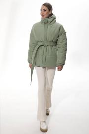 Куртка утепленная, с центральной застежкой на молнию, с высоким воротником- стойкой, планкой, застегивающейся на кнопки. На полочках расположены прорезные карманы с листочками. Рукав втачной, с отрезной манжетой. Манжета присборена на резинку. Плечо спущенное. Куртка со съемным поясом. Куртка на утепленной подкладке.