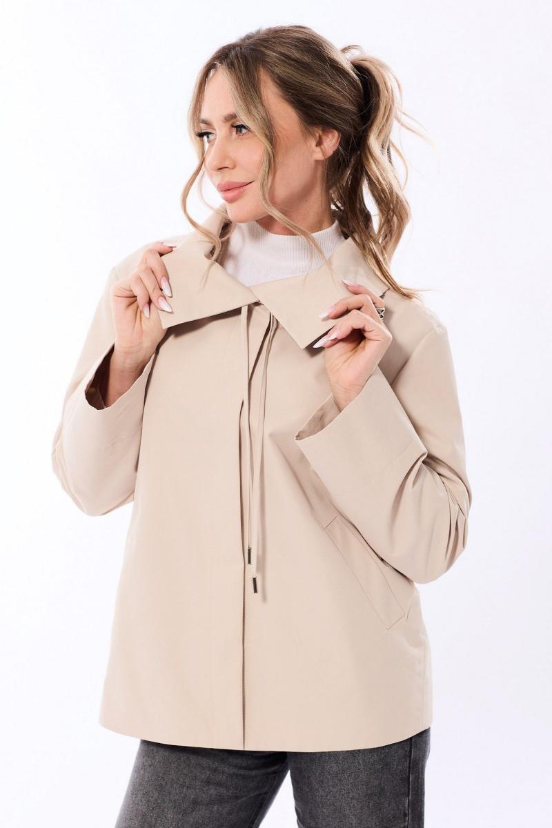 Куртка, с центральной застежкой на кнопки, отложным воротником. Воротник с кулисой и шнуром. По переду расположены прорезные карманы с листочками. Рукав втачной. Плечо спущенное. Спинка со средним швом. Куртка на подкладке.