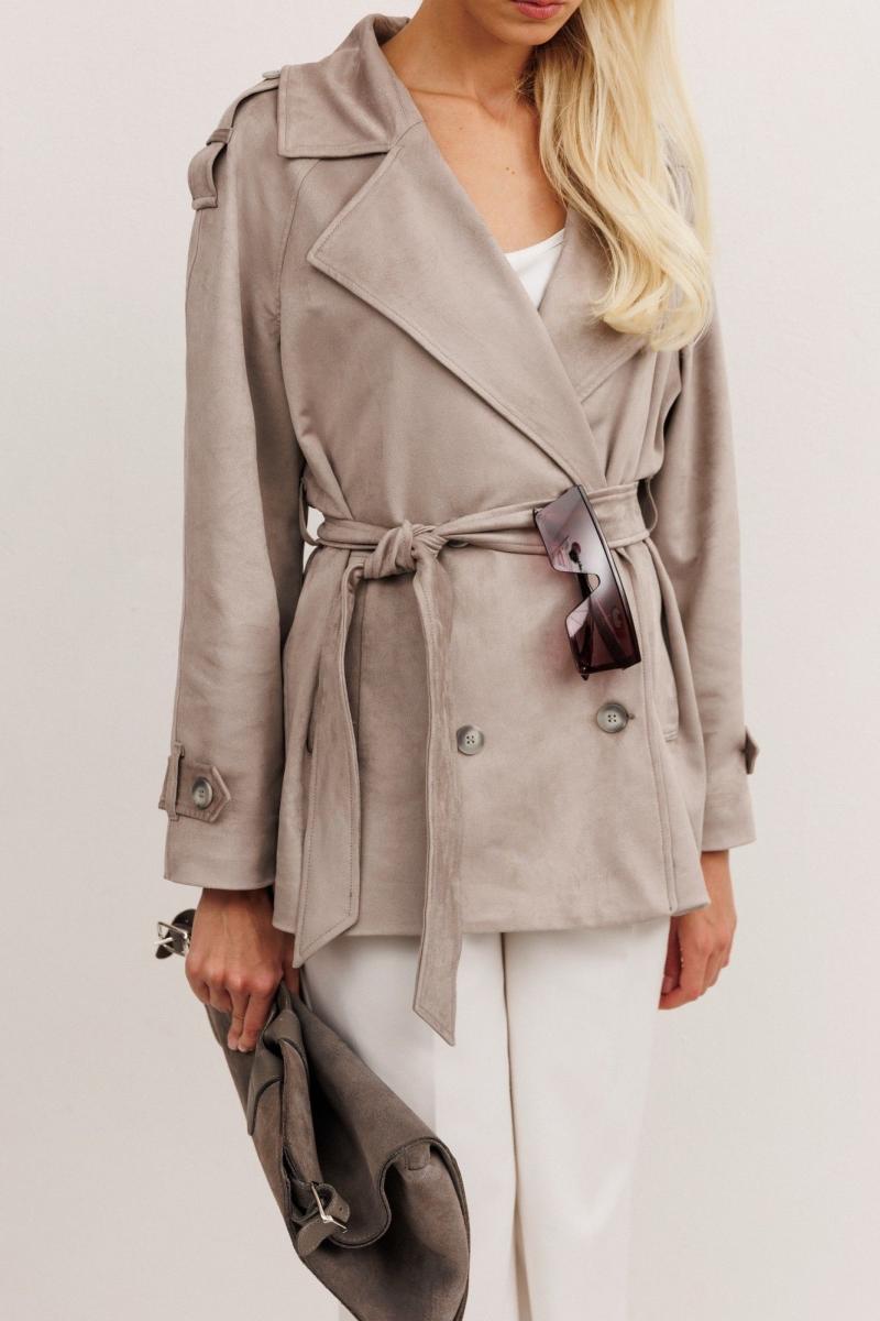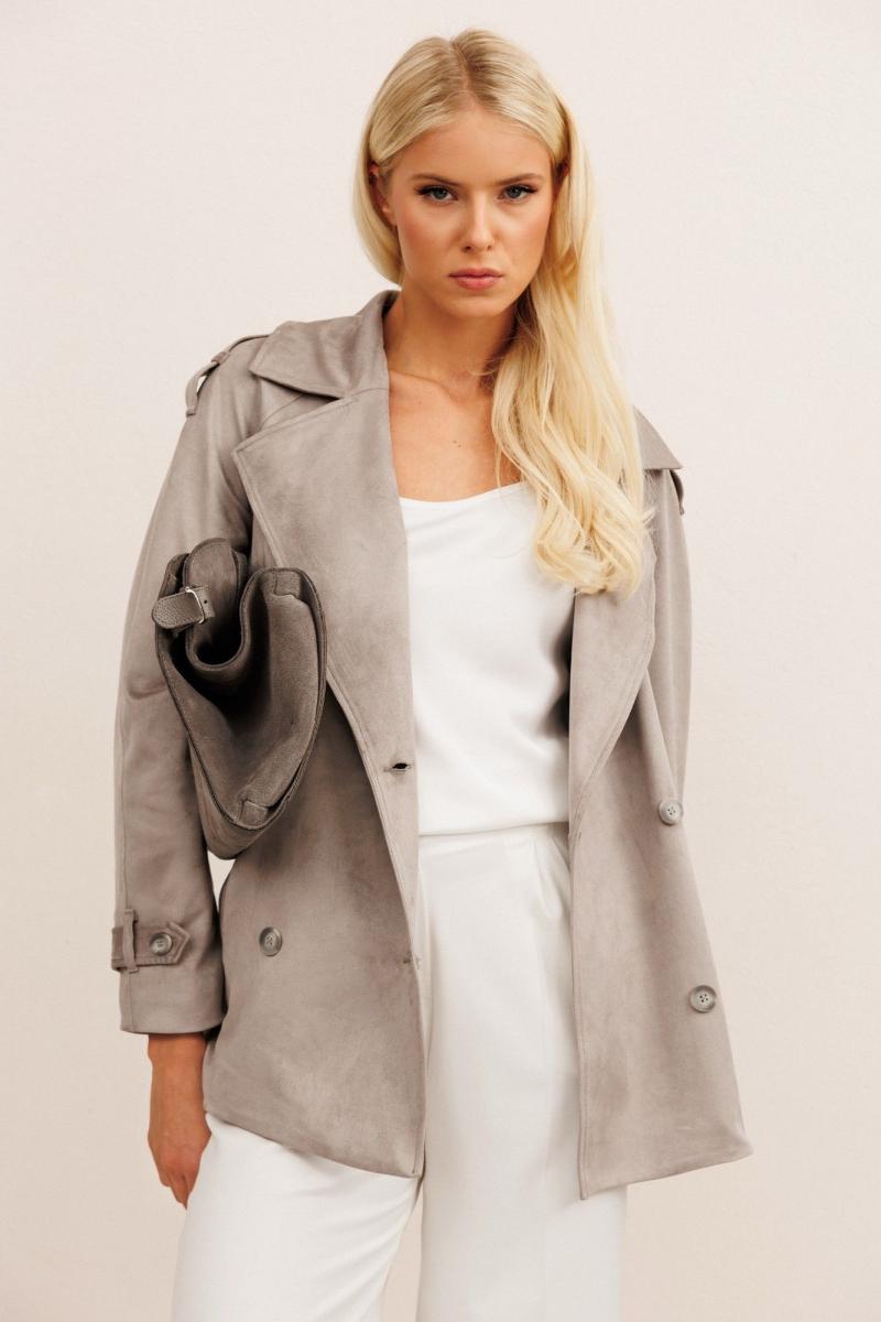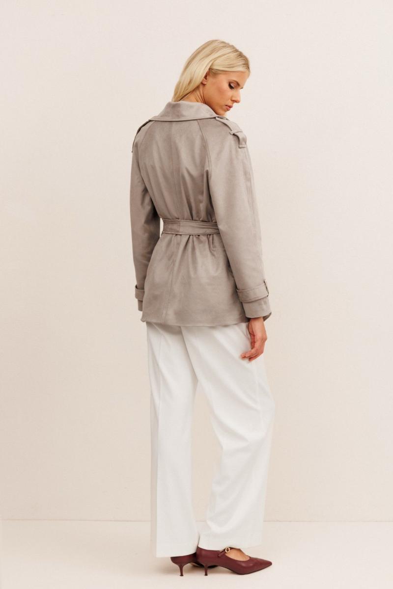 Куртка из эко-велюра: - прямой силуэт - спущенная линия плеча с патами - воротник пиджачного типа - застёжка на пуговицы - боковые карманы - длина до линии бёдер - на подкладке