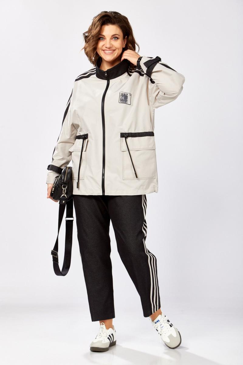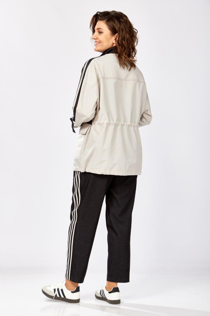Комбинированный брючный премиум комплект в стиле спорт шик для внесезонной носки. Удлиненная куртка-ветровка без подкладки, по талии с кулисой, свободного силуэта на молнии, с накладными карманами, воротник - высокая отложная стойка, по рукаву контрастная отделка и регулируемый хлястик . Спинка с кокеткой. Брюки средней посадки, заужены к низу с декоративными лампасами , без застежки , на круговой резинке по талии , с карманами в боковых швах.