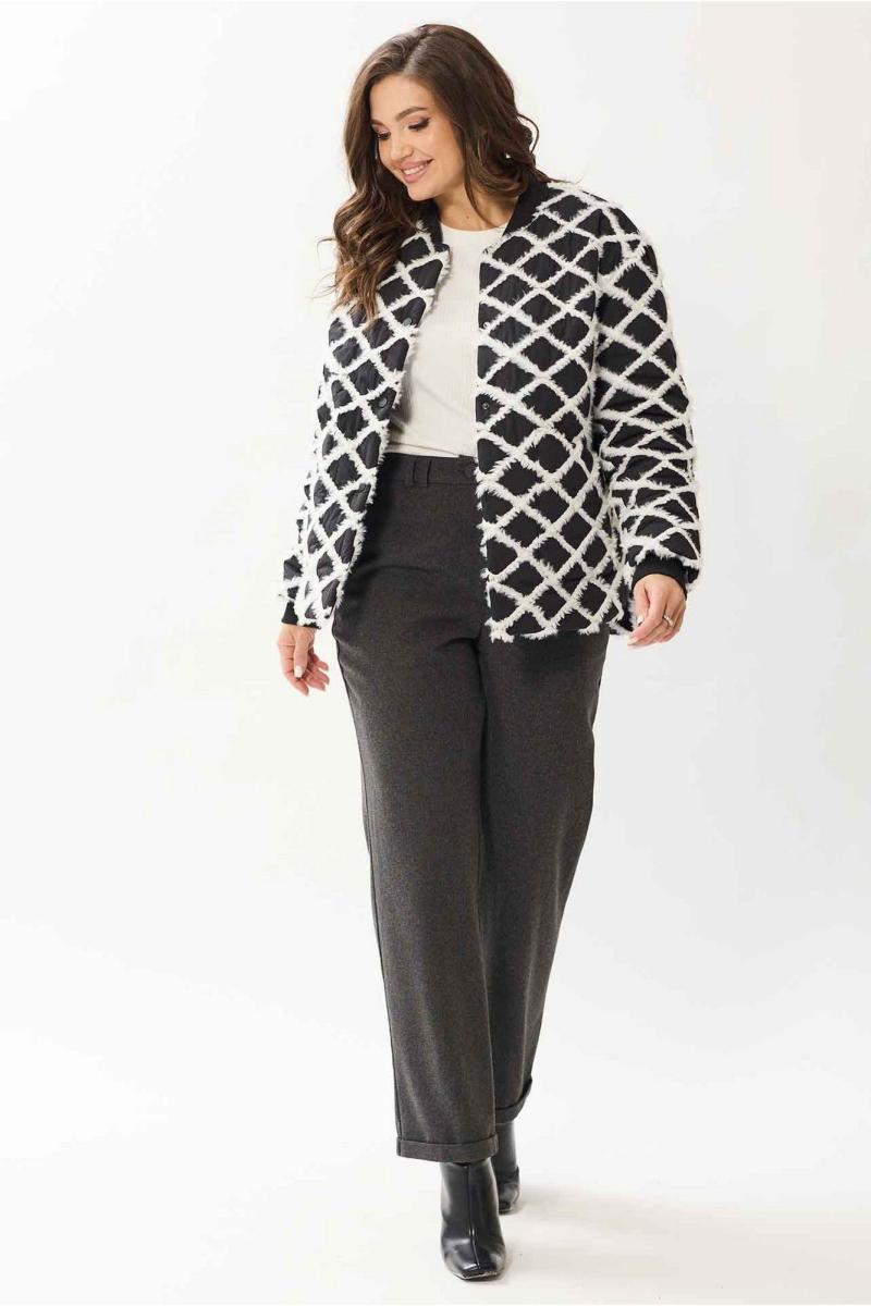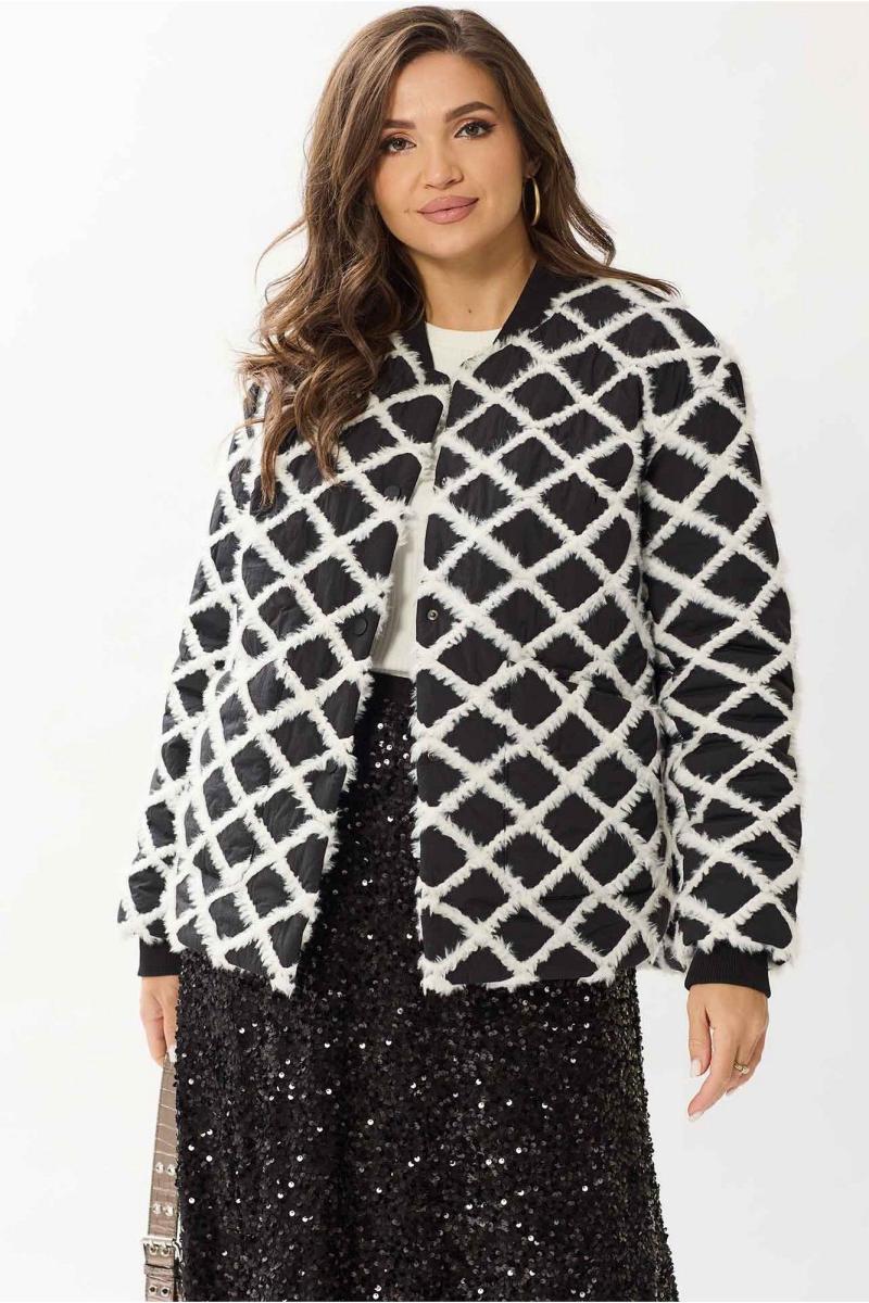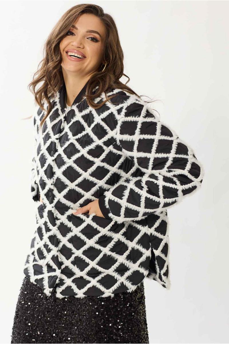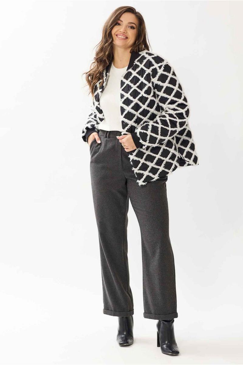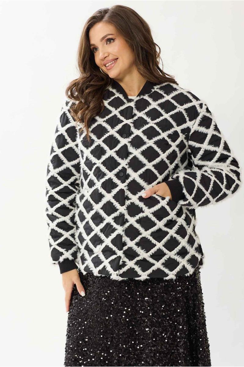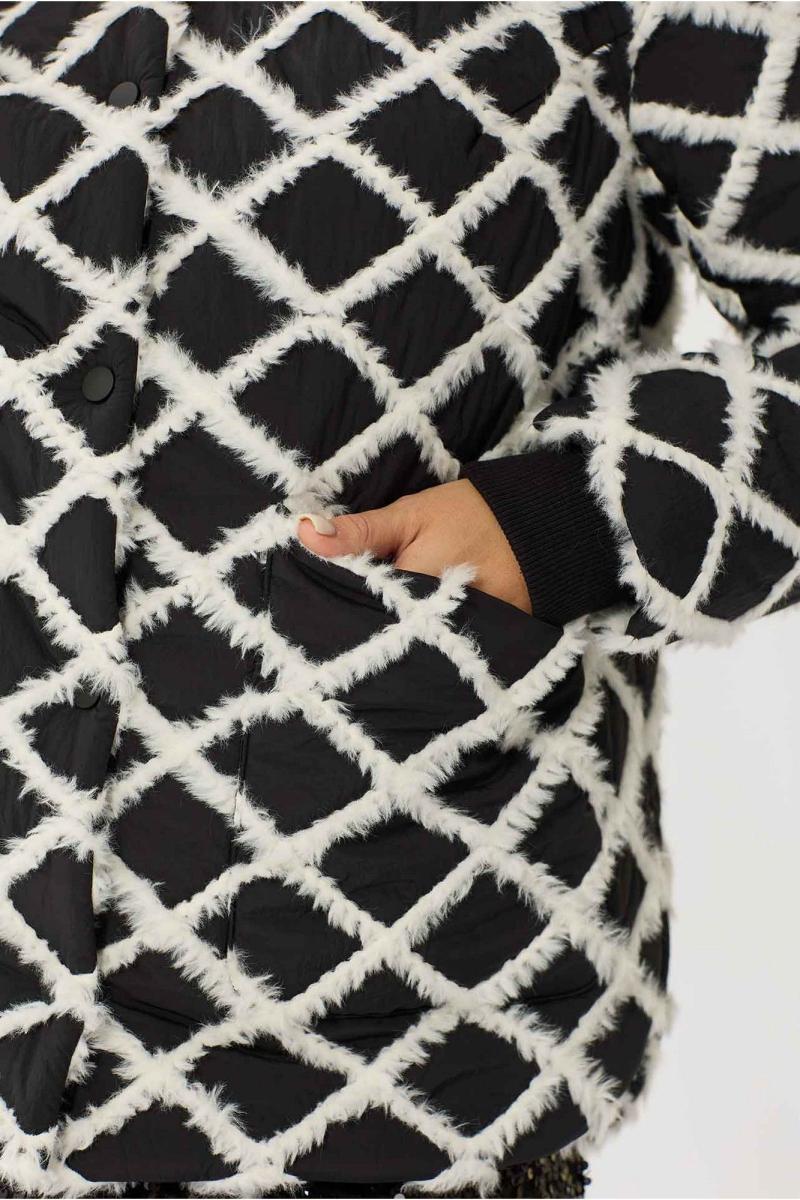 Куртка женская прямого силуэта, с центральная застежка на кнопки. Перед с нагрудными вытачками и фигурными накладными карманами. Рукав втачной 2х шовный, по низу с пришивным довязом. Горловина обработана довязом. Низ фигурными разрезами. Подкладка на флисе, утеплитель.